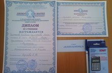 27 февраля ученица 6 класса Султанова Лина приняла участие в VI Республиканском конкурсе исследовательских работ и проектов школьников "Дебют в науке". В очном этапе награждена дипломом 3 степени за исследовательскую работу в секции "Математика 5-7 классов". Учитель математики Гараева А.Ф. получила благодарность за руководство исследовательской работы.