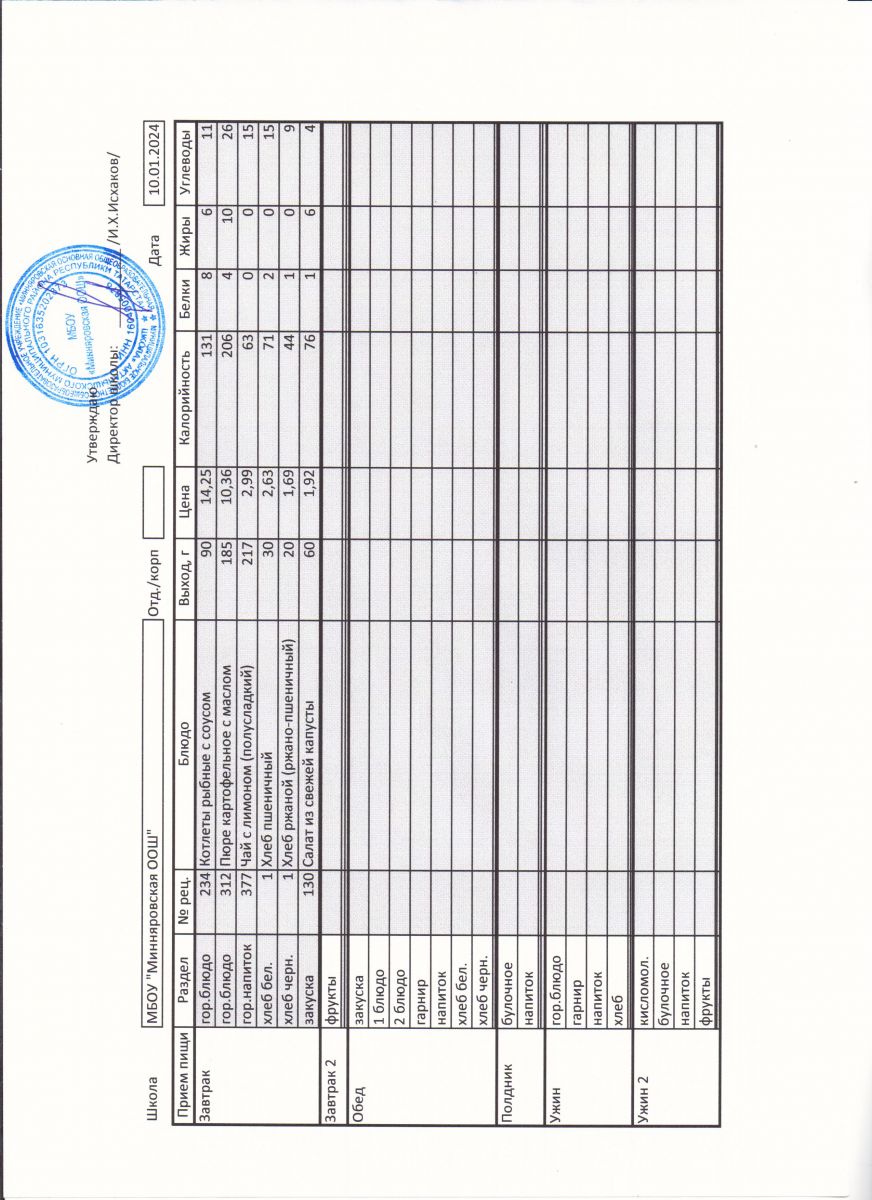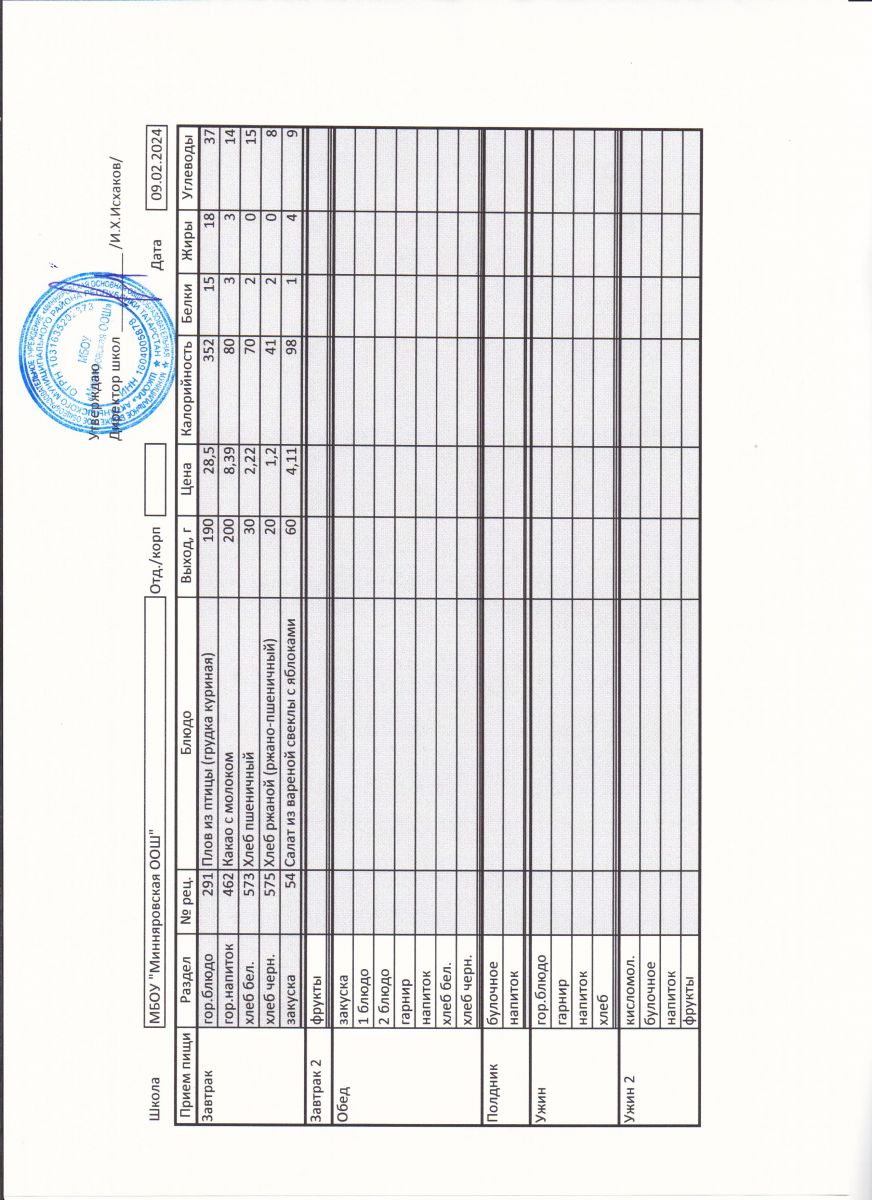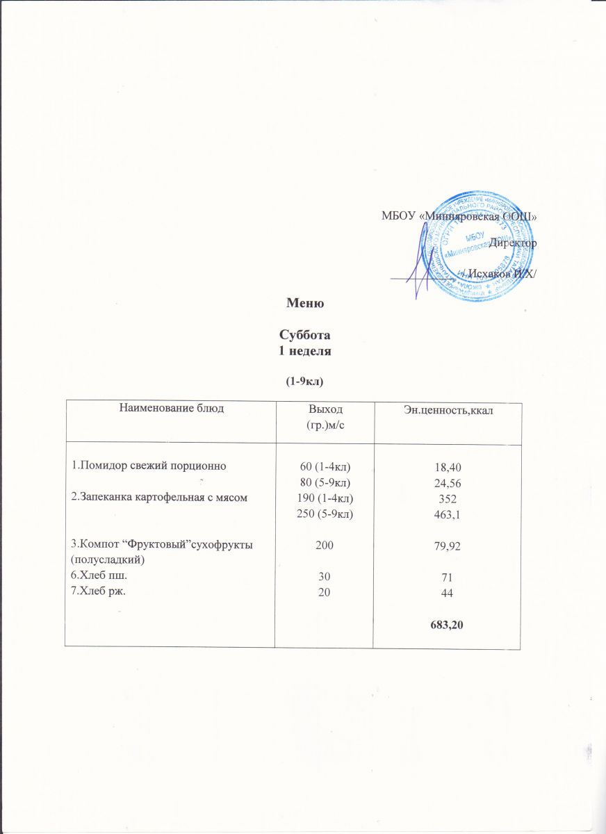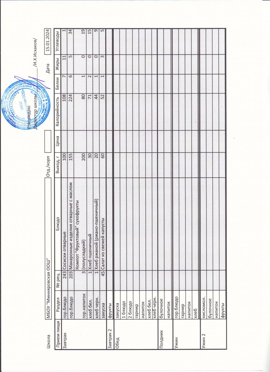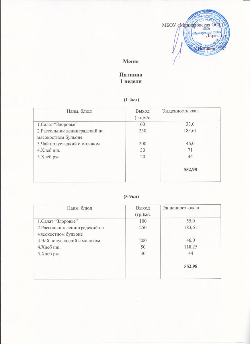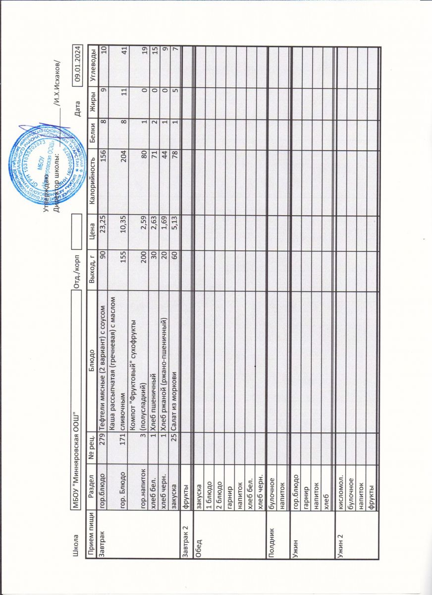 Меню МБОУ "Минняровская ООШ" на 24.11.2020г