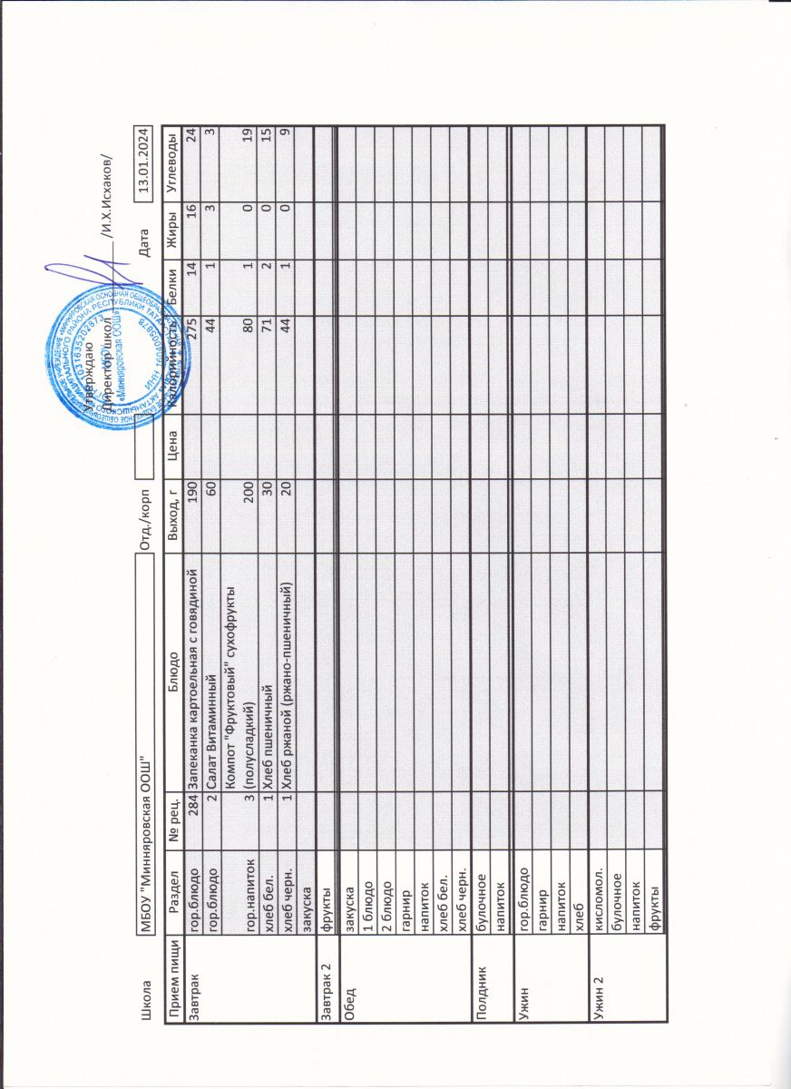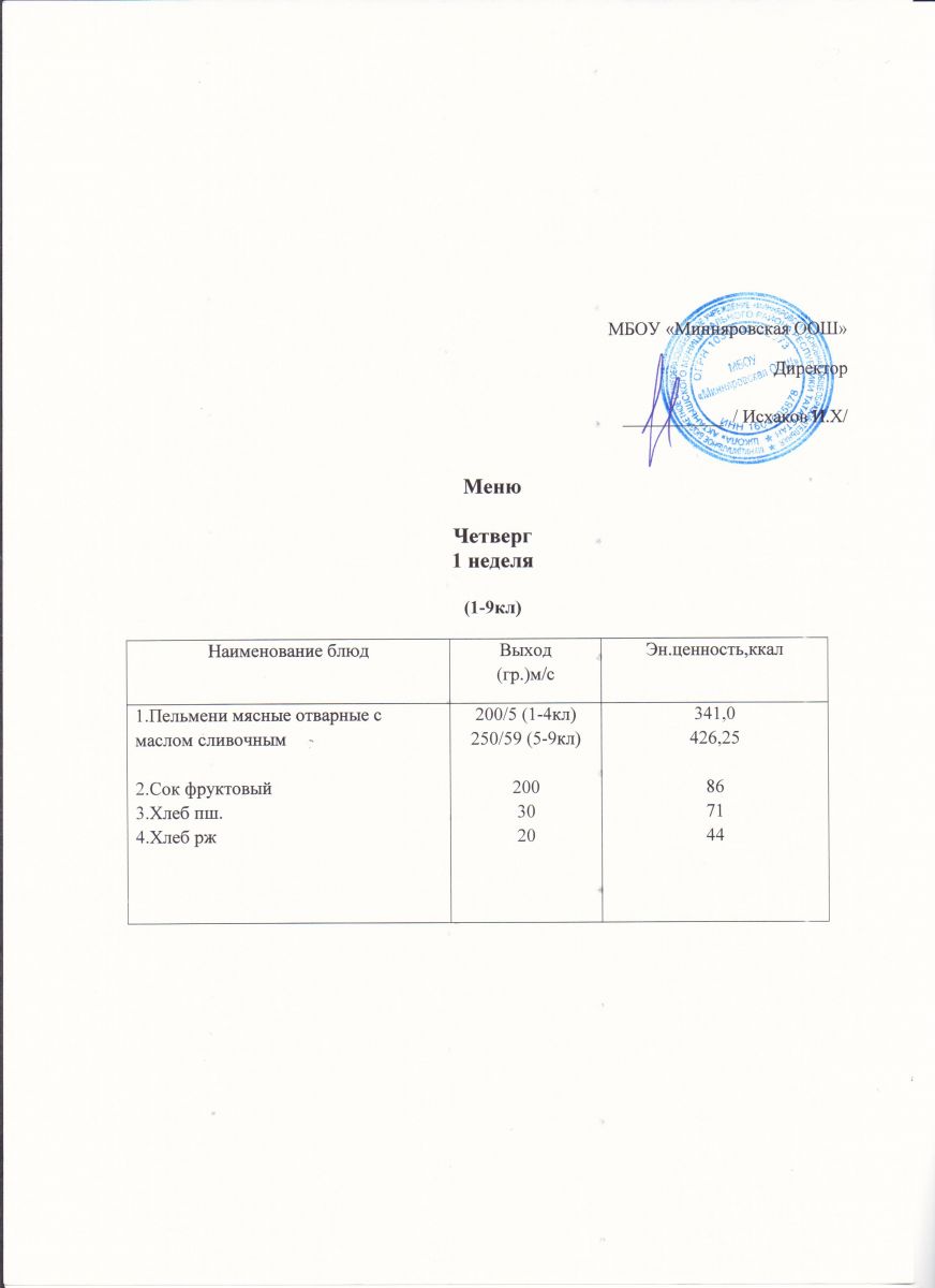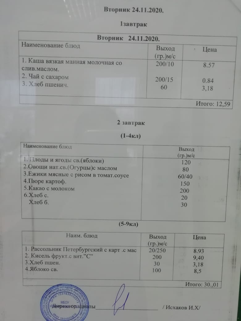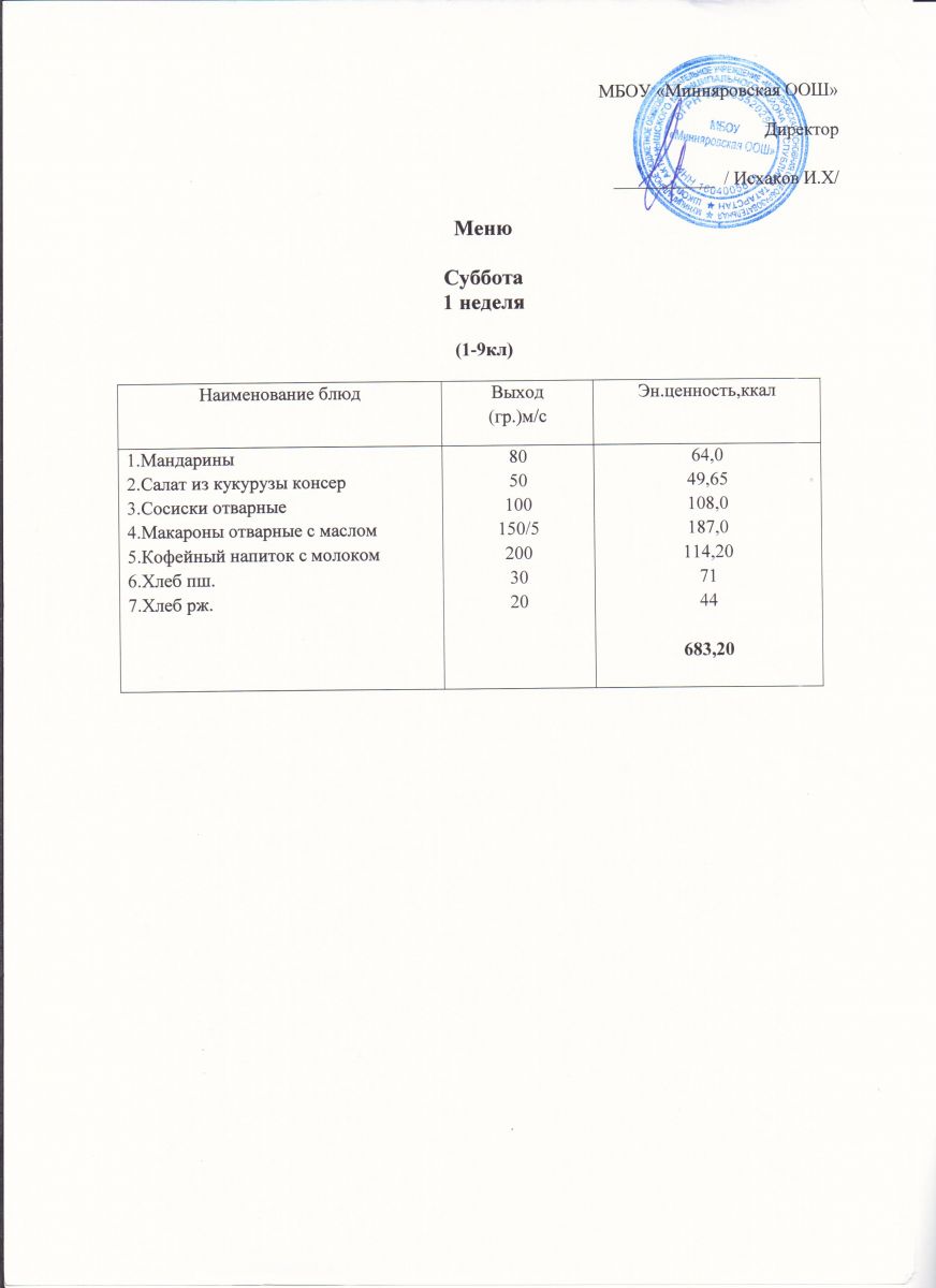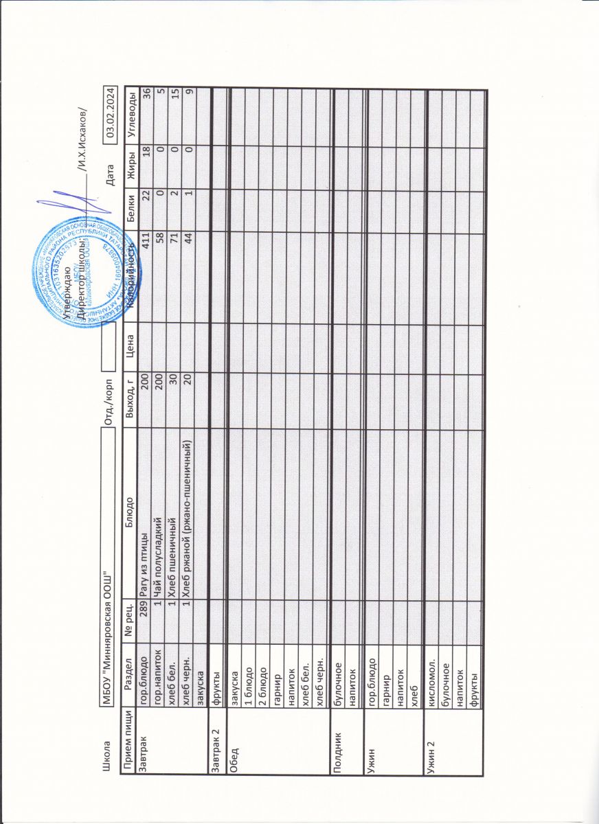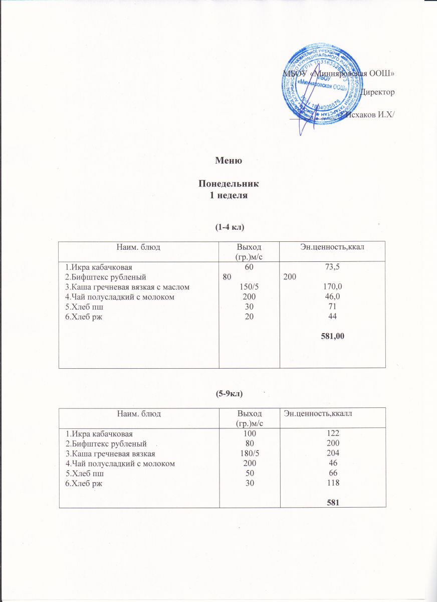 Меню МБОУ "Минняровская ООШ" на 24.11.2020г