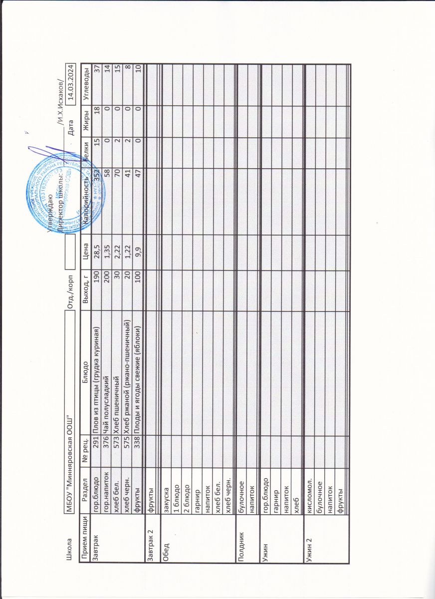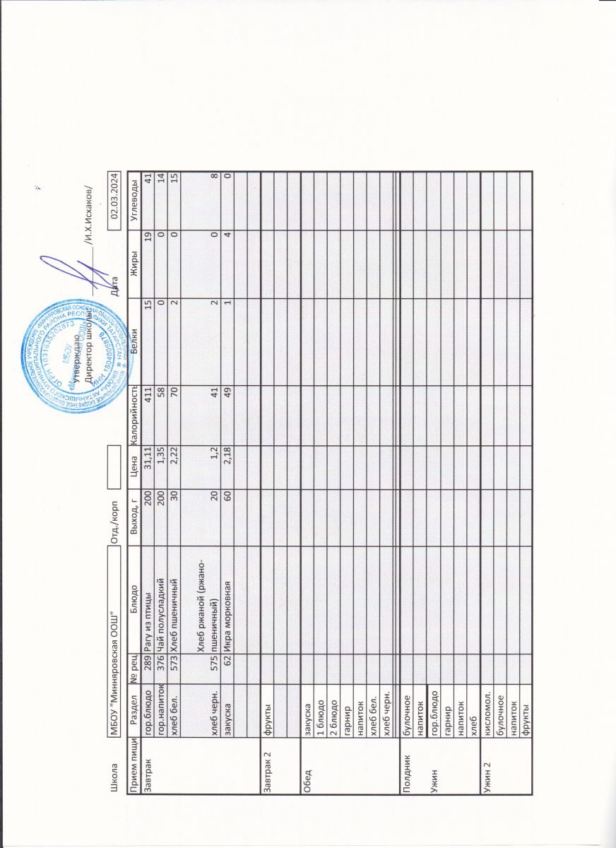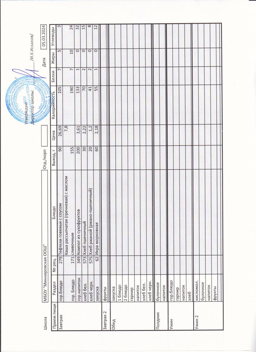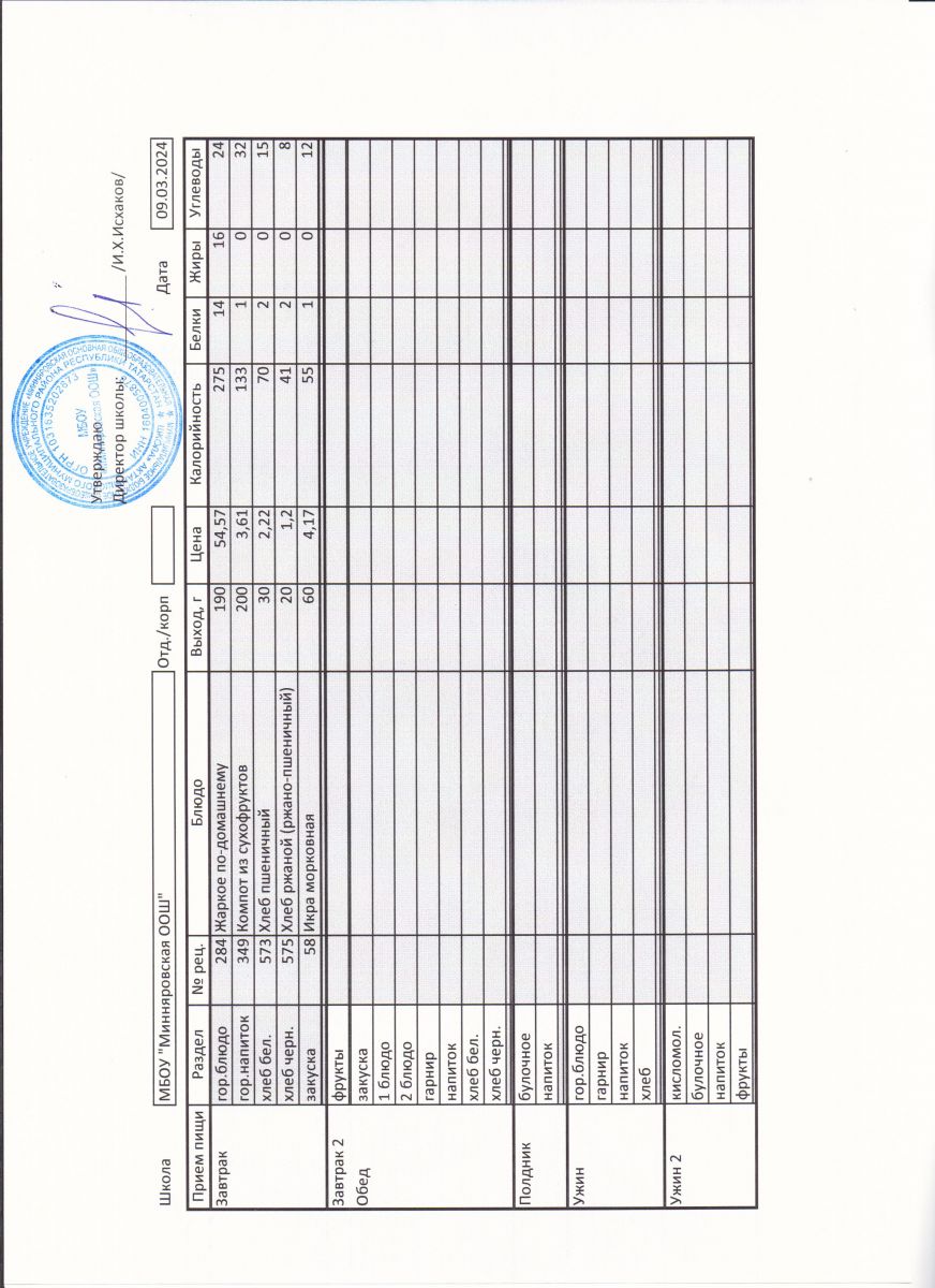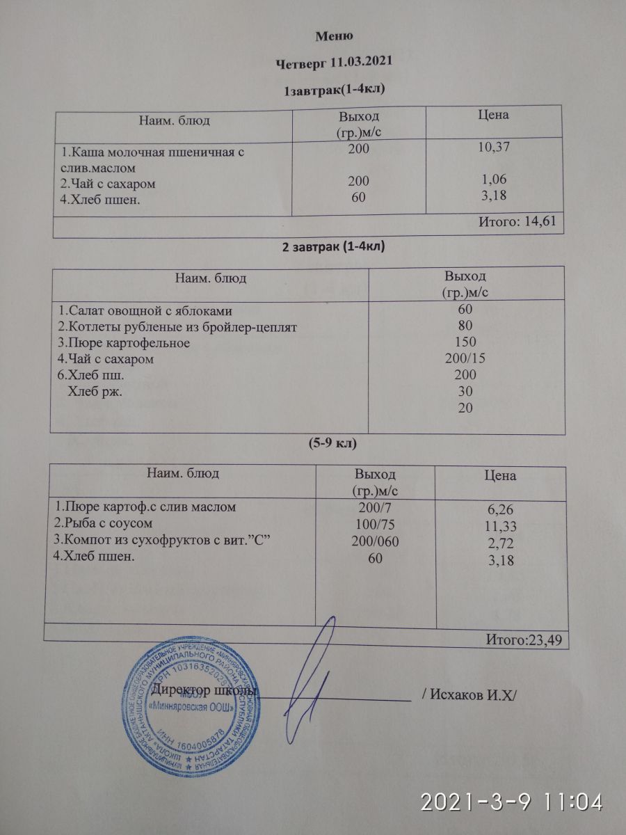 Меню МБОУ "Минняровская ООШ" на 09.03.2021, на 10.03.2023, на 11.03.2021, на 12.03.2021, на 13.03.2021 г.