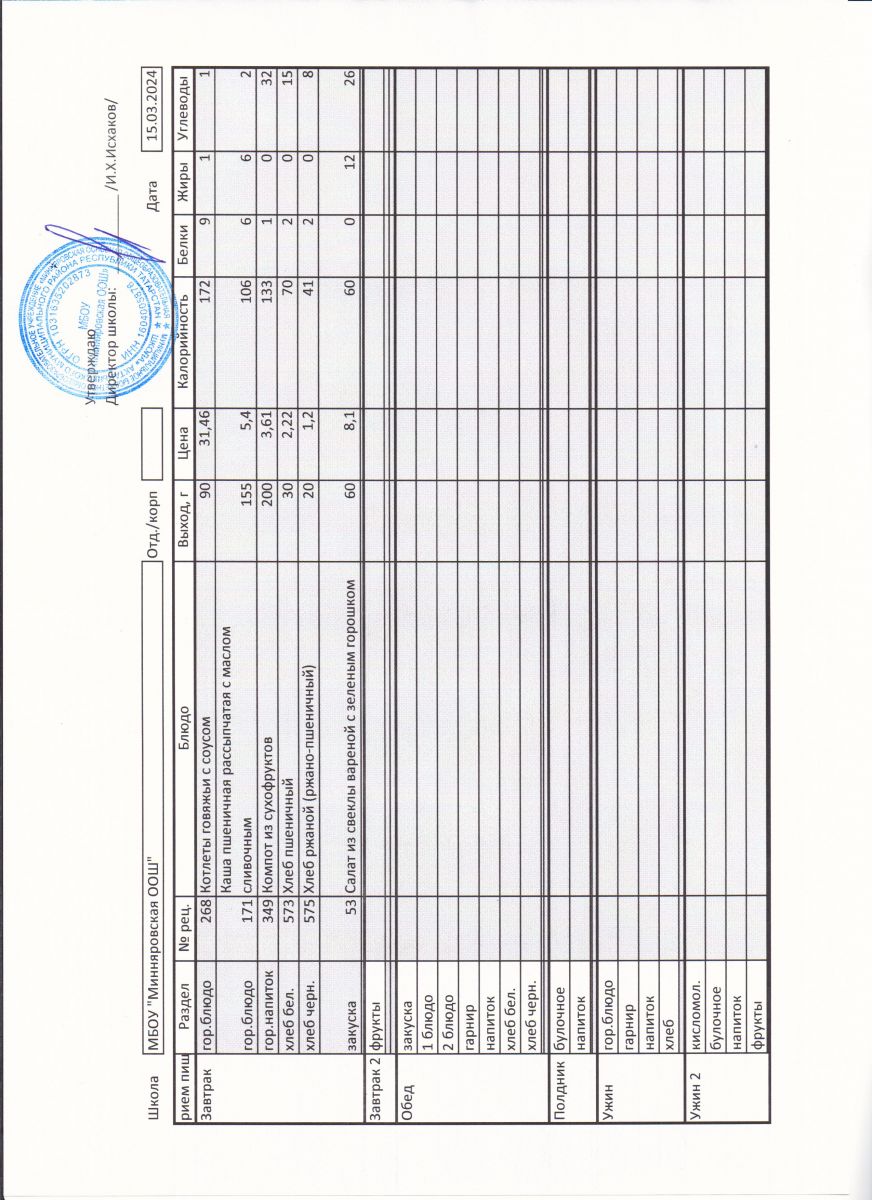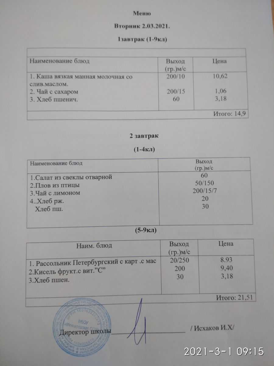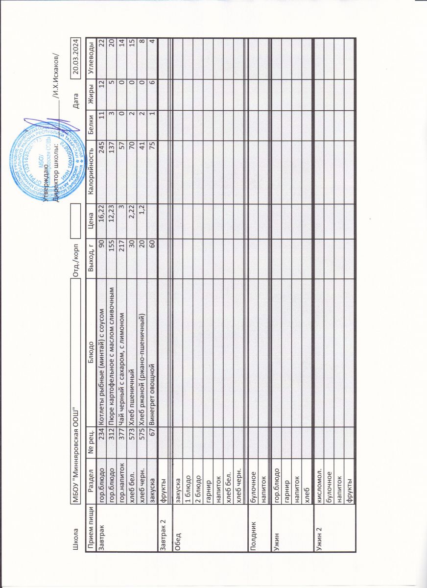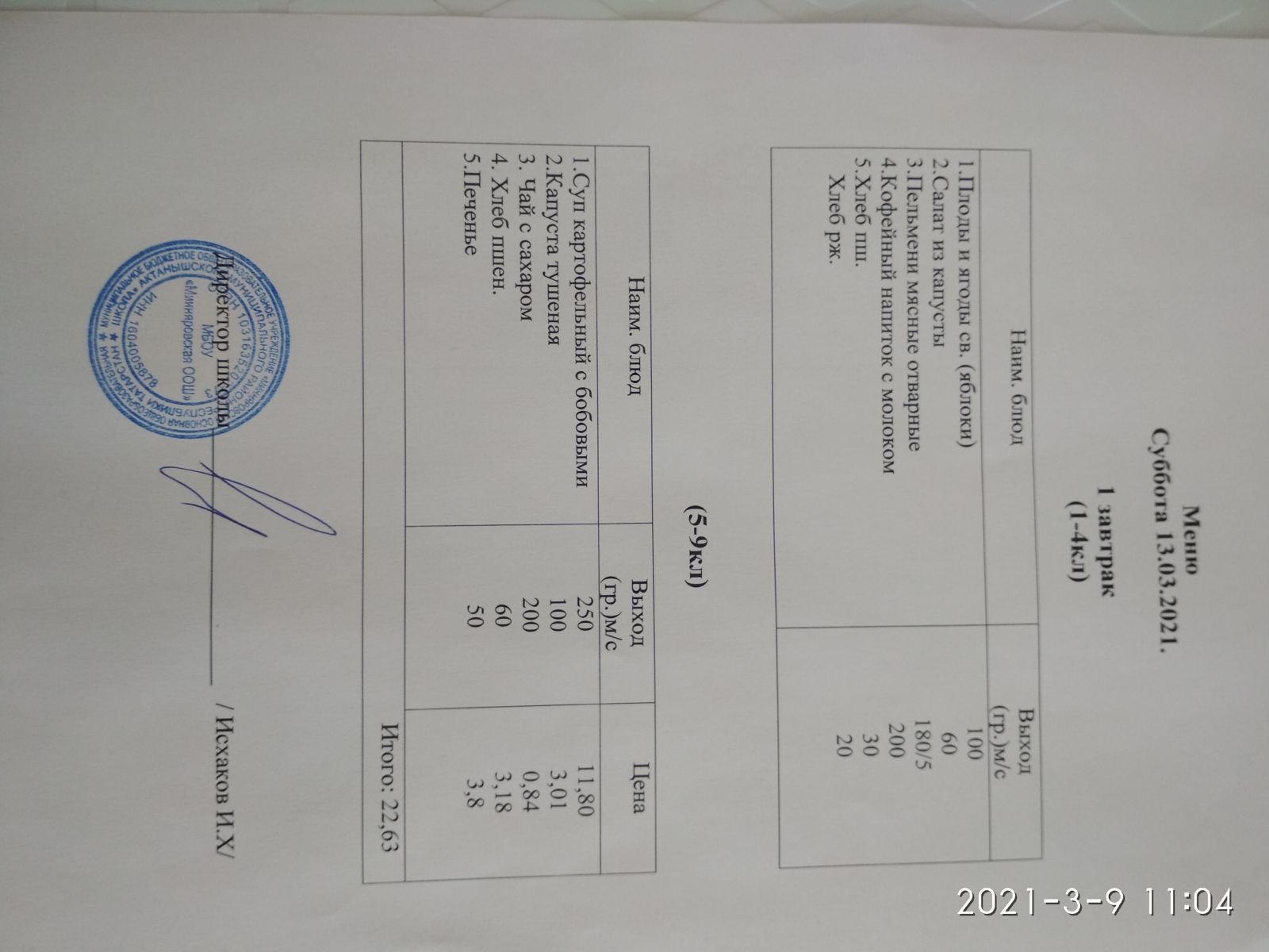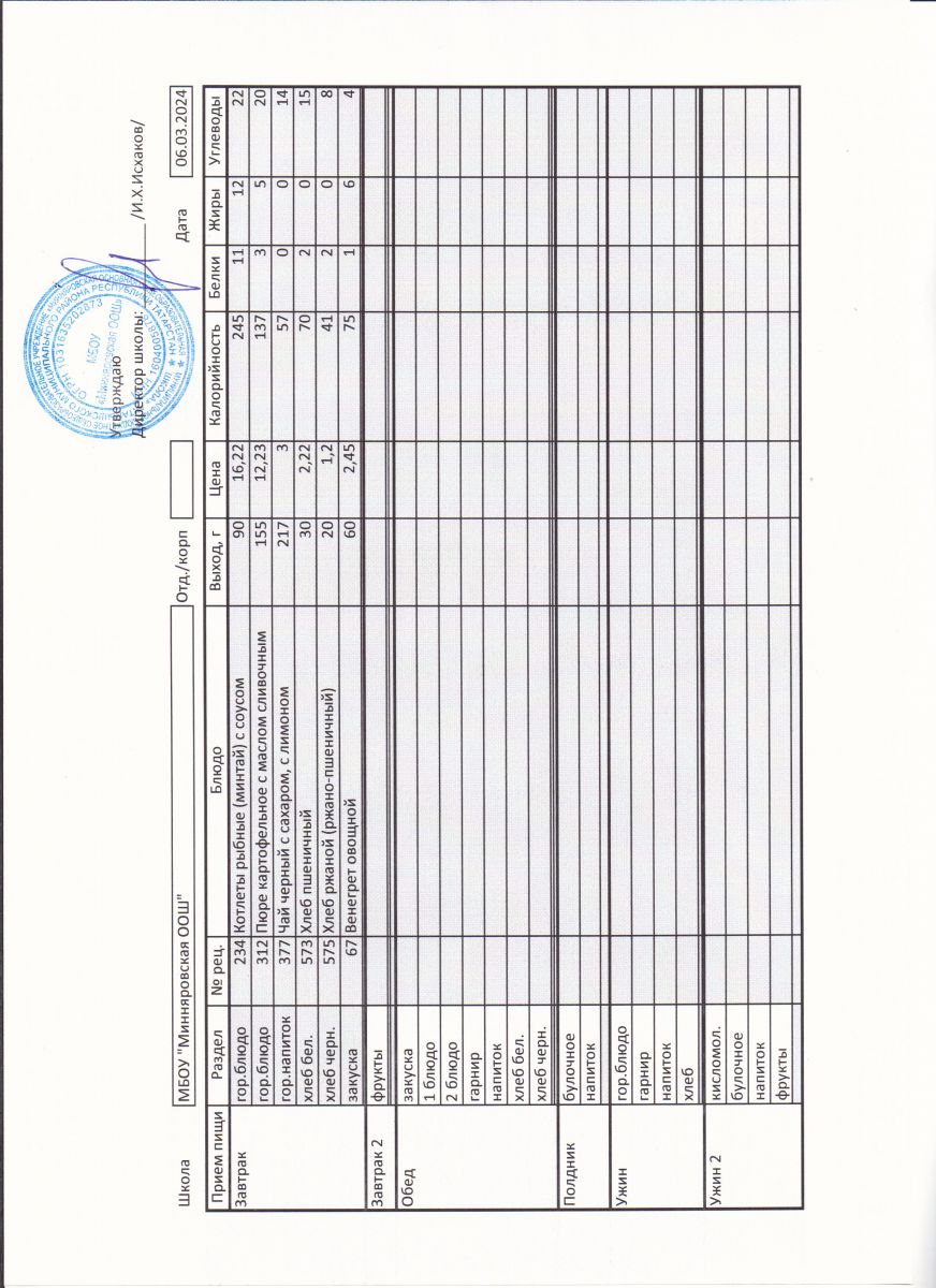 Меню МБОУ "Минняровская ООШ" на 09.03.2021, на 10.03.2023, на 11.03.2021, на 12.03.2021, на 13.03.2021 г.