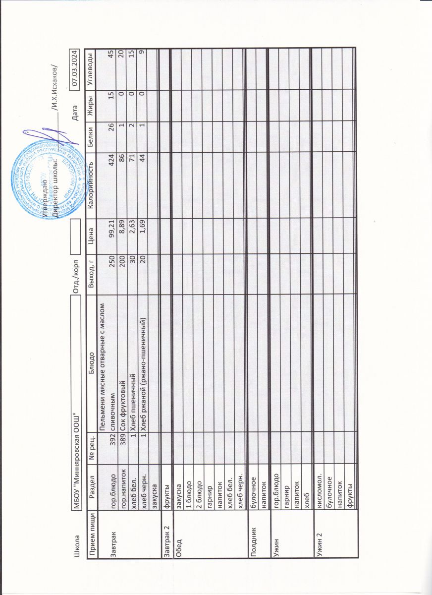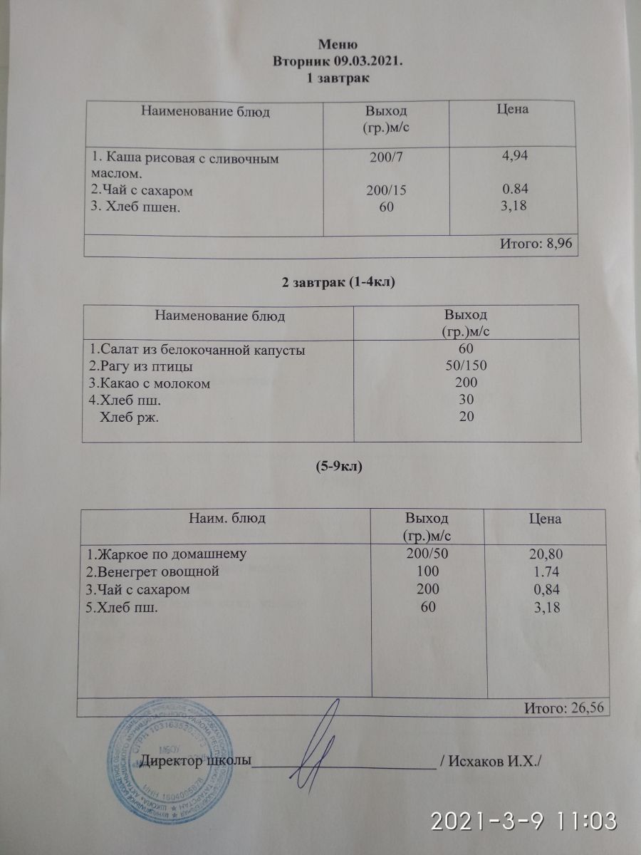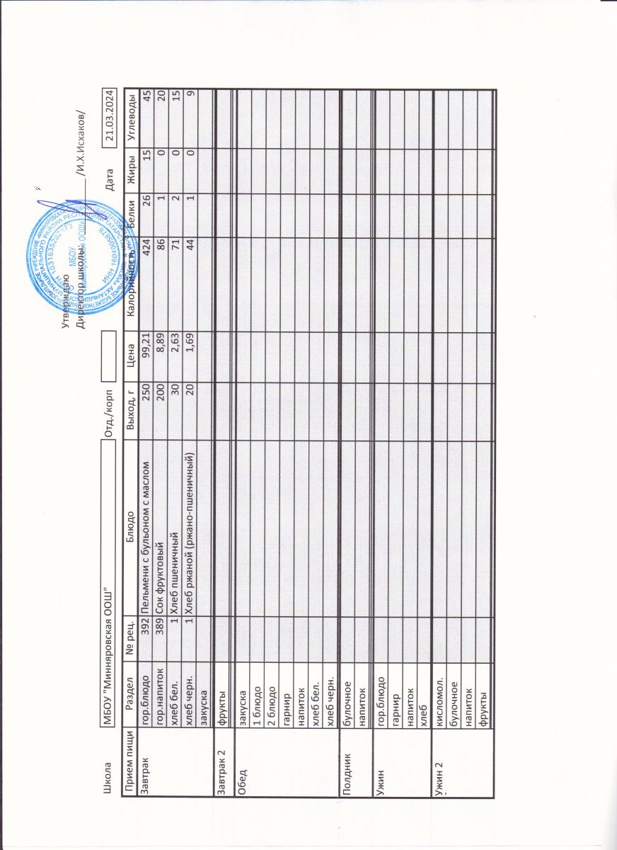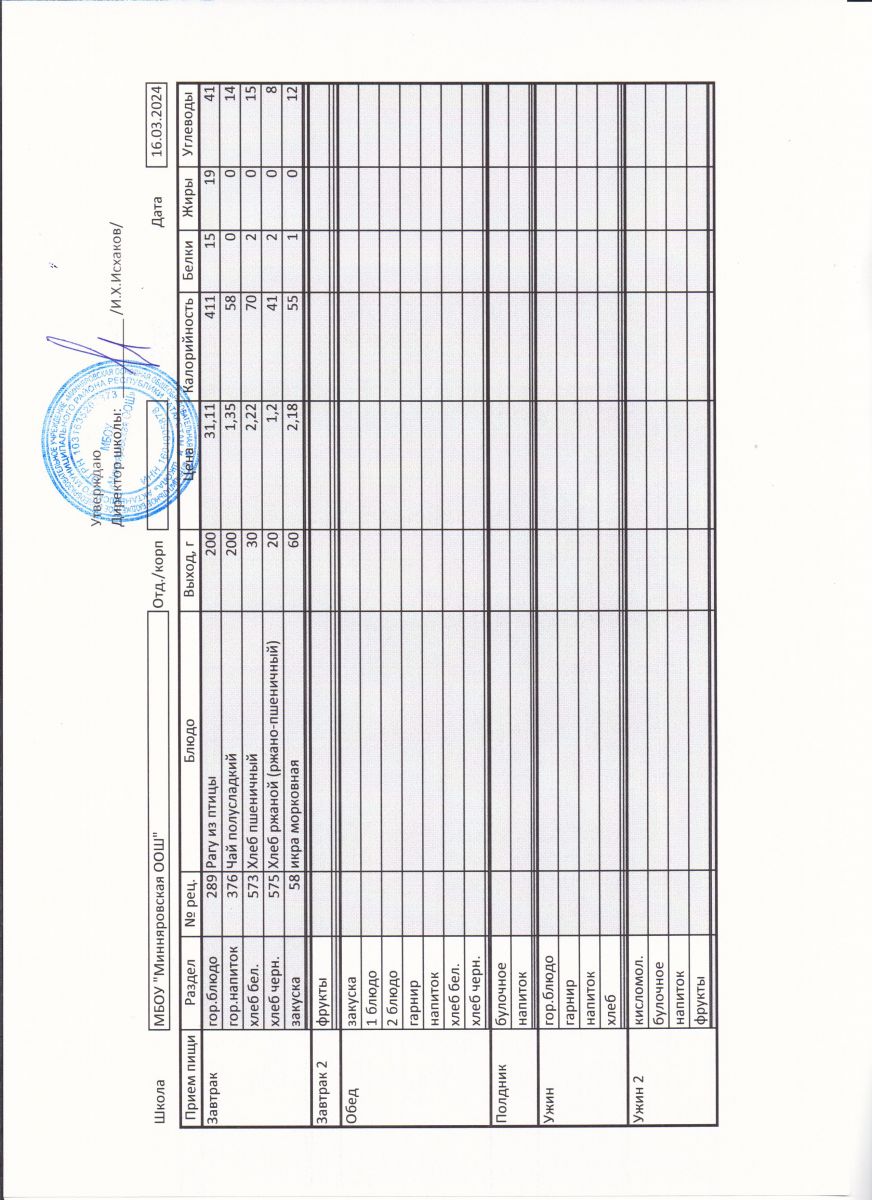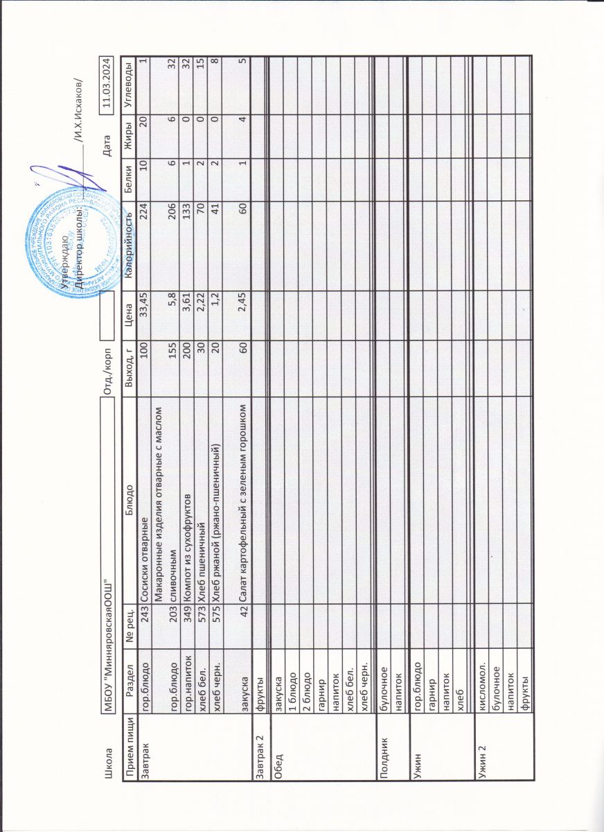 Меню МБОУ "Минняровская ООШ" на 09.03.2021, на 10.03.2023, на 11.03.2021, на 12.03.2021, на 13.03.2021 г.