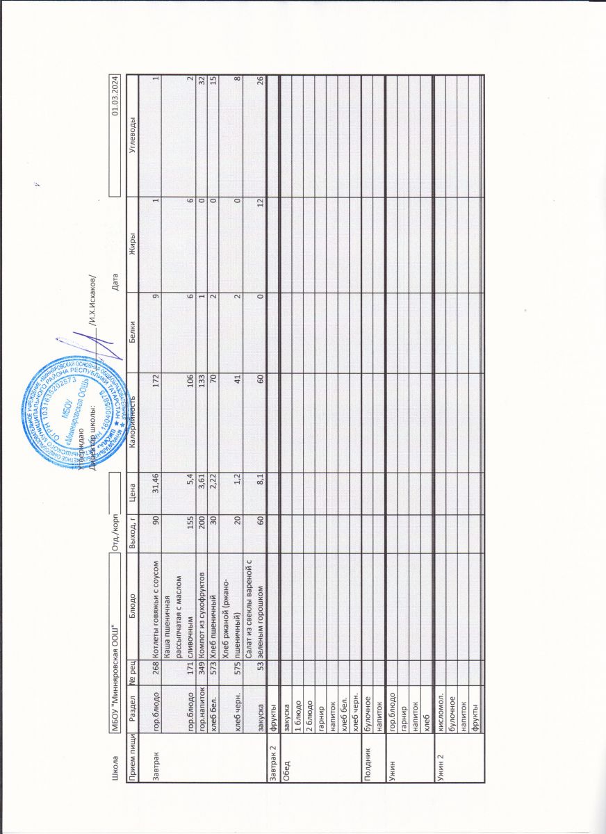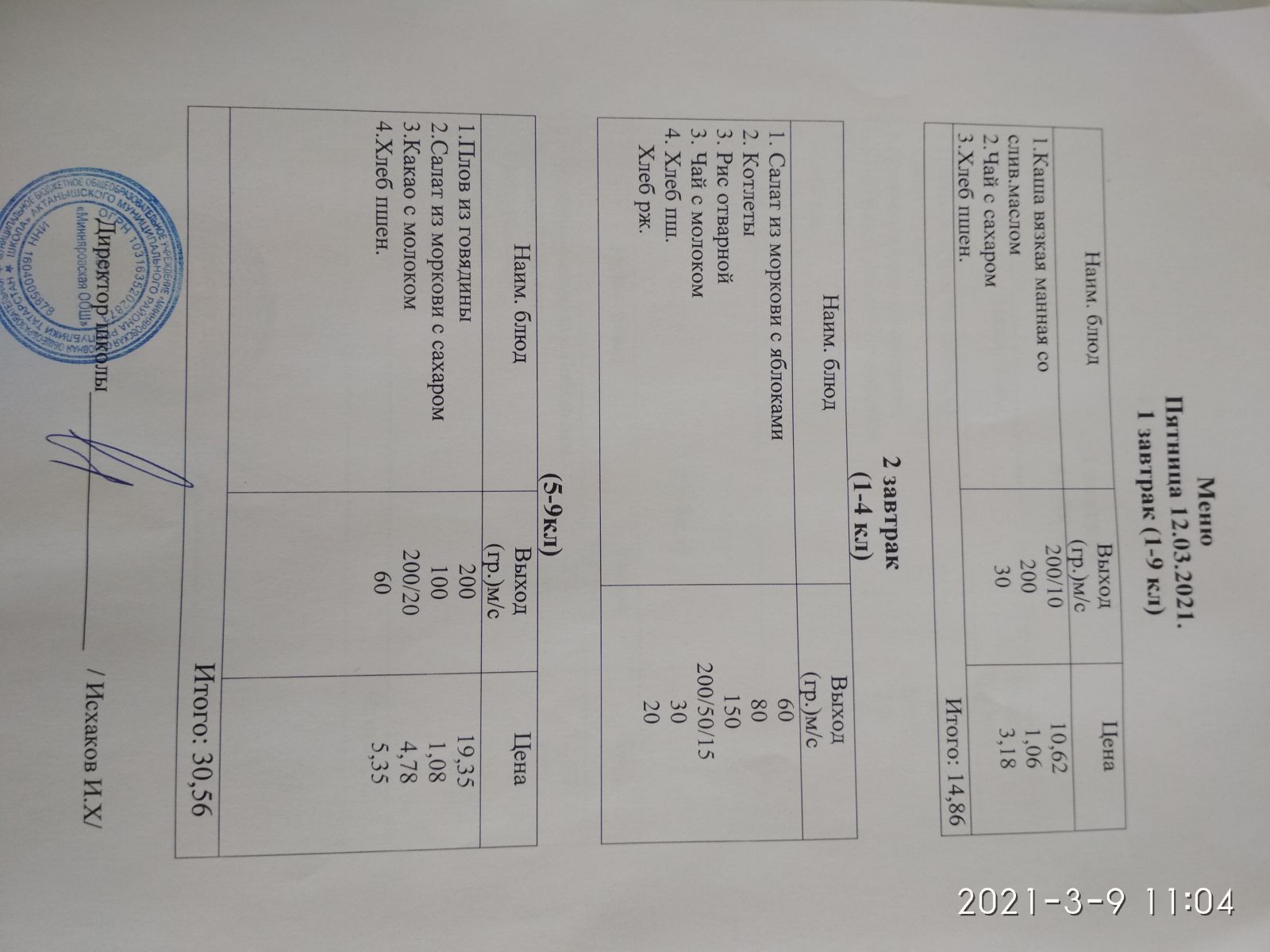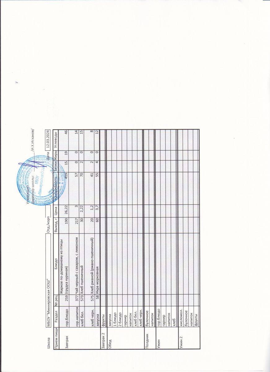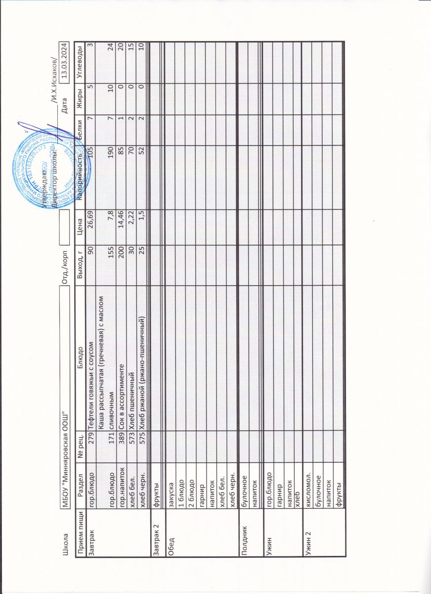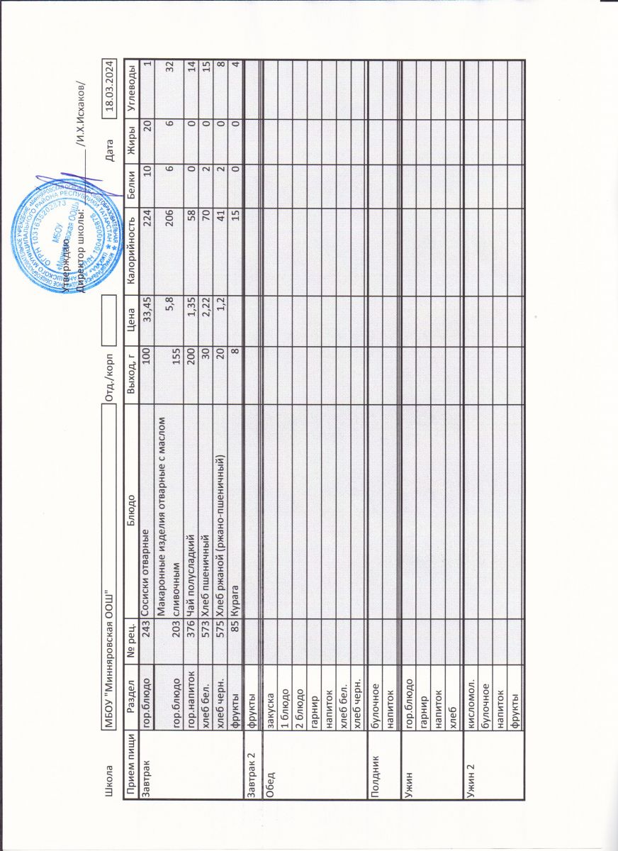 Меню МБОУ "Минняровская ООШ" на 09.03.2021, на 10.03.2023, на 11.03.2021, на 12.03.2021, на 13.03.2021 г.