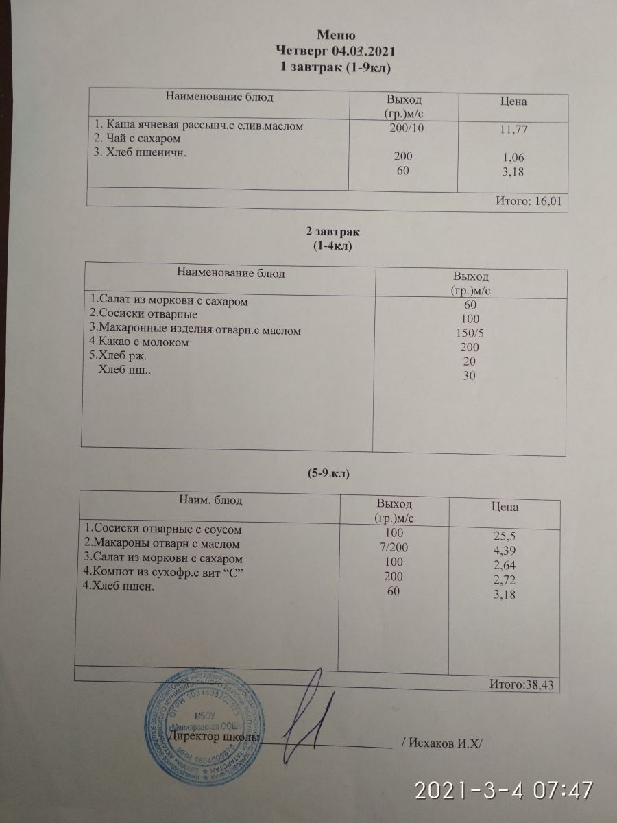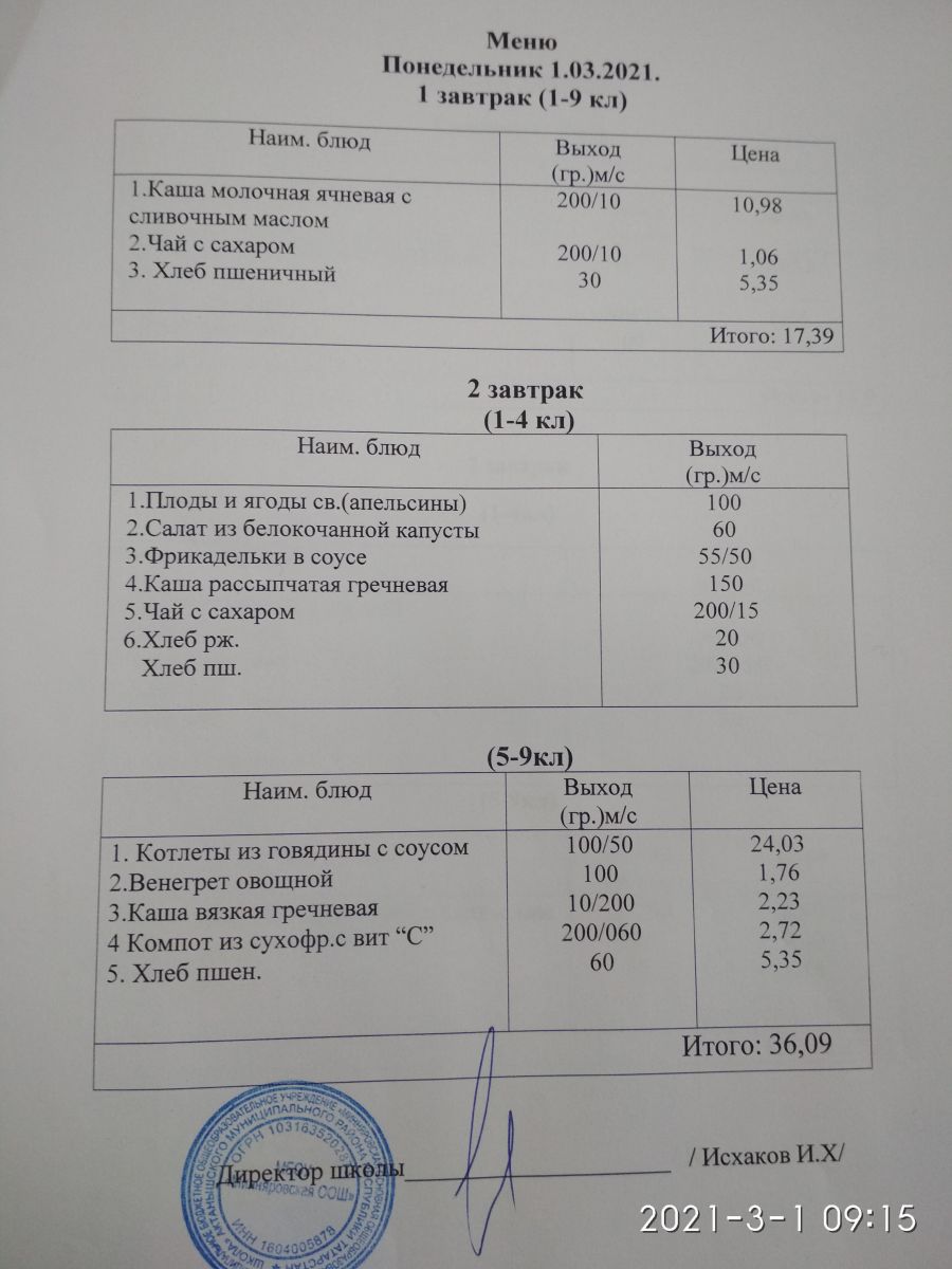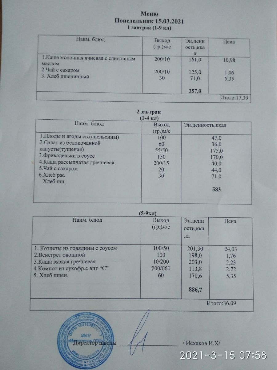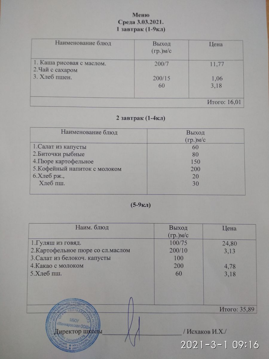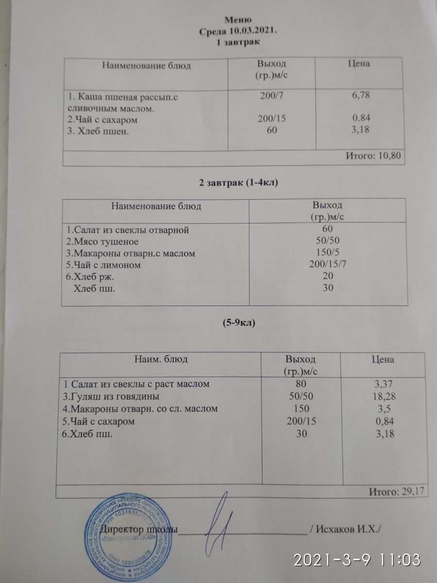 Меню МБОУ "Минняровская ООШ" на 09.03.2021, на 10.03.2023, на 11.03.2021, на 12.03.2021, на 13.03.2021 г.