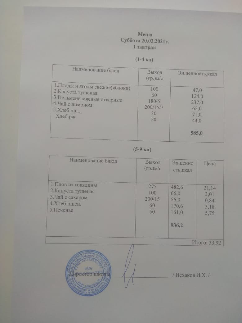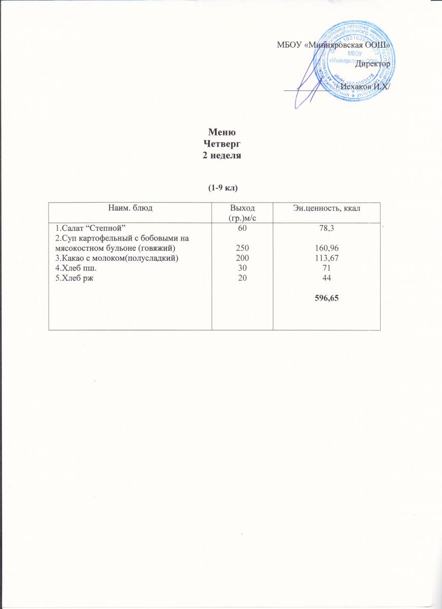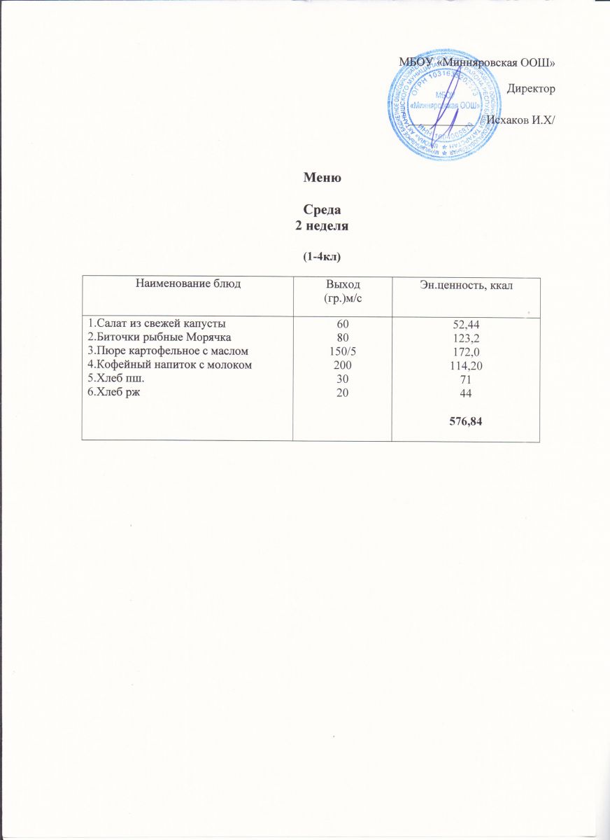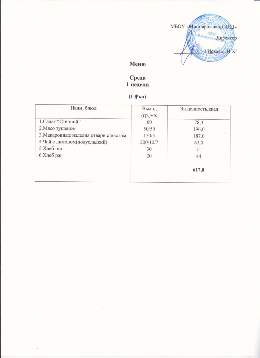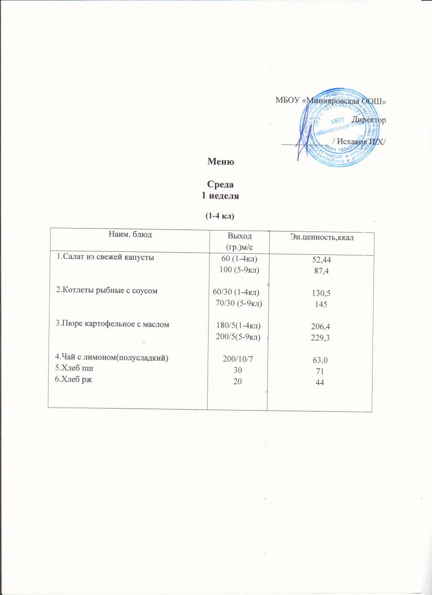 Меню МБОУ "Минняровская ООШ" на 31.03, на 01.04, на 02.04, на 03.04.2021г.