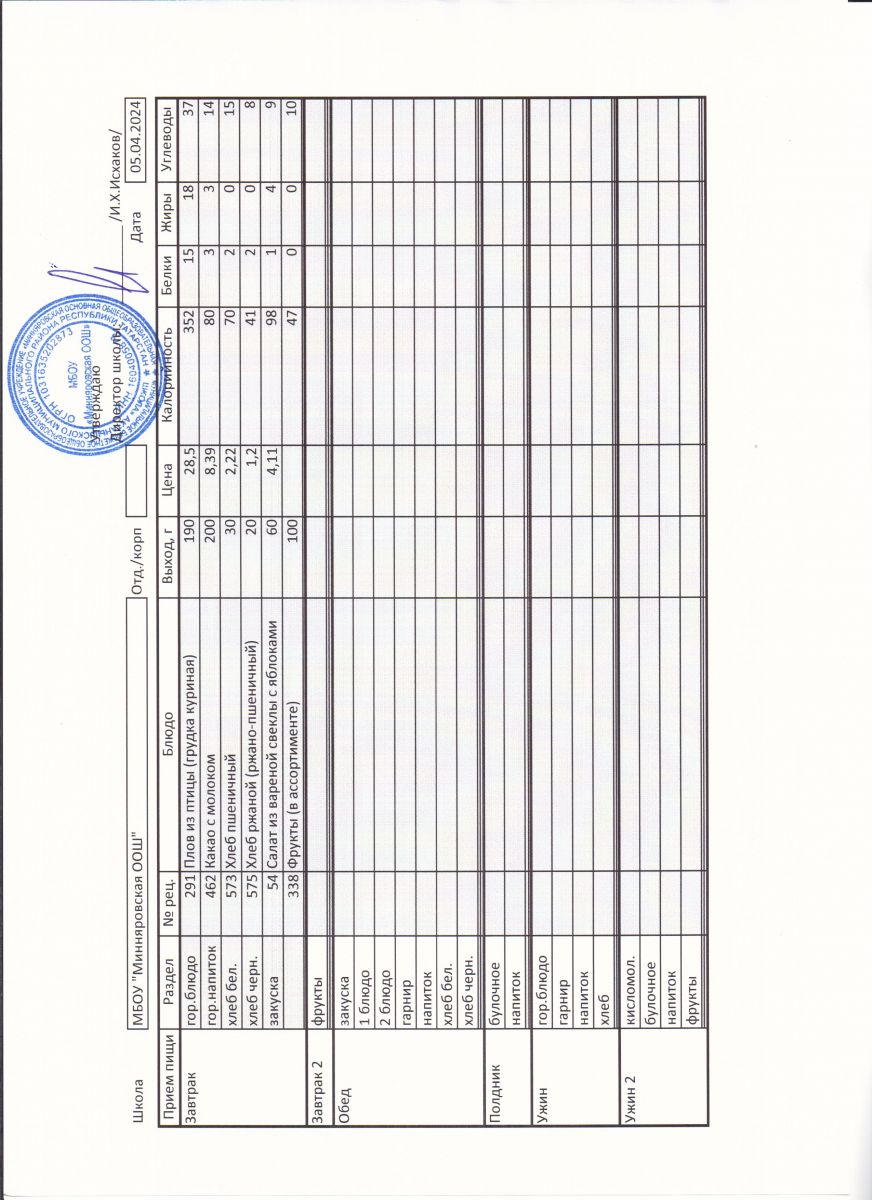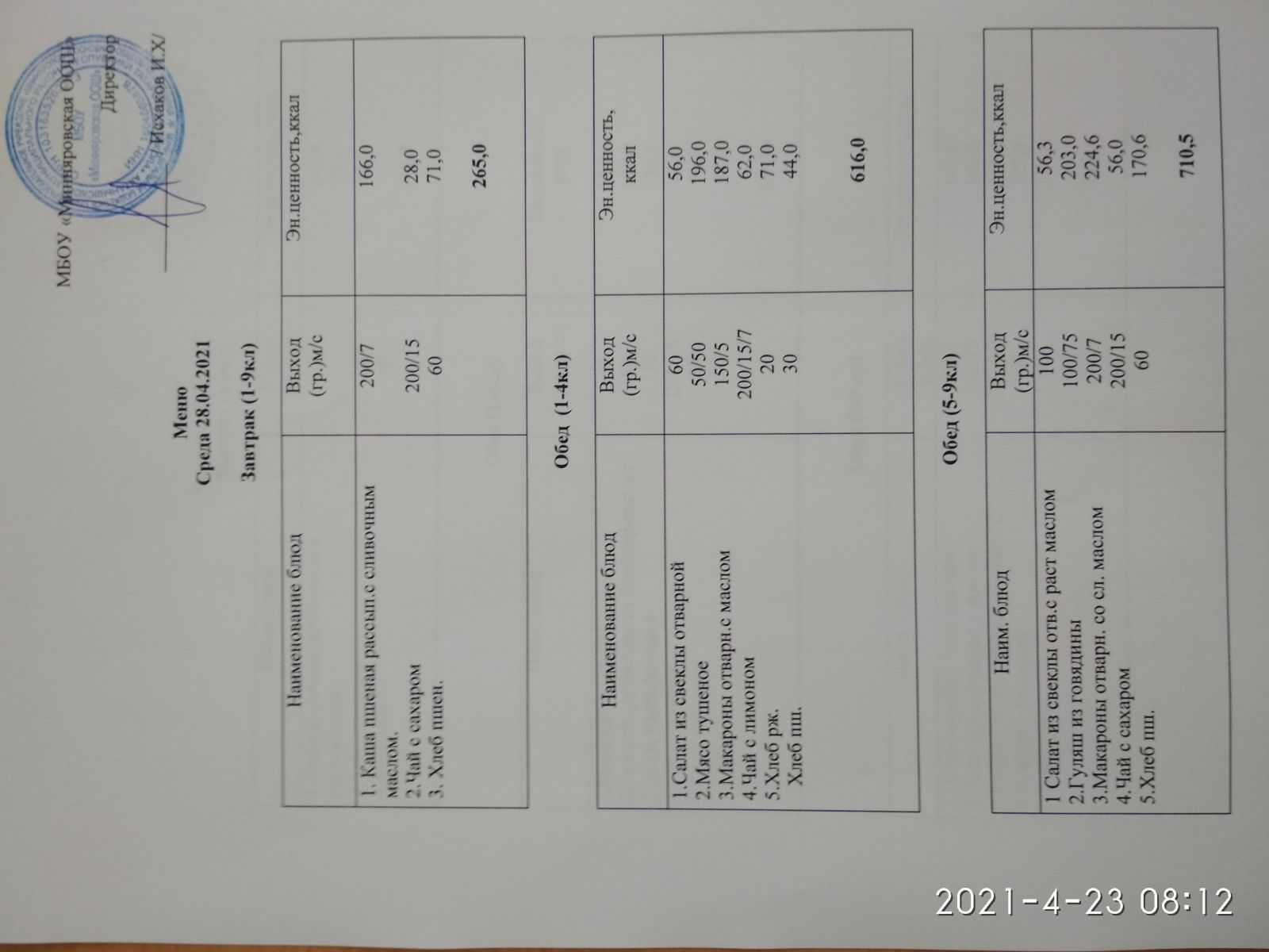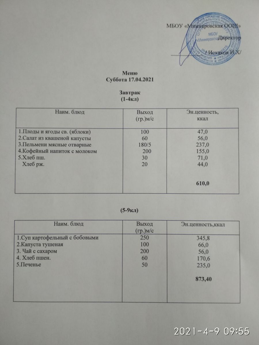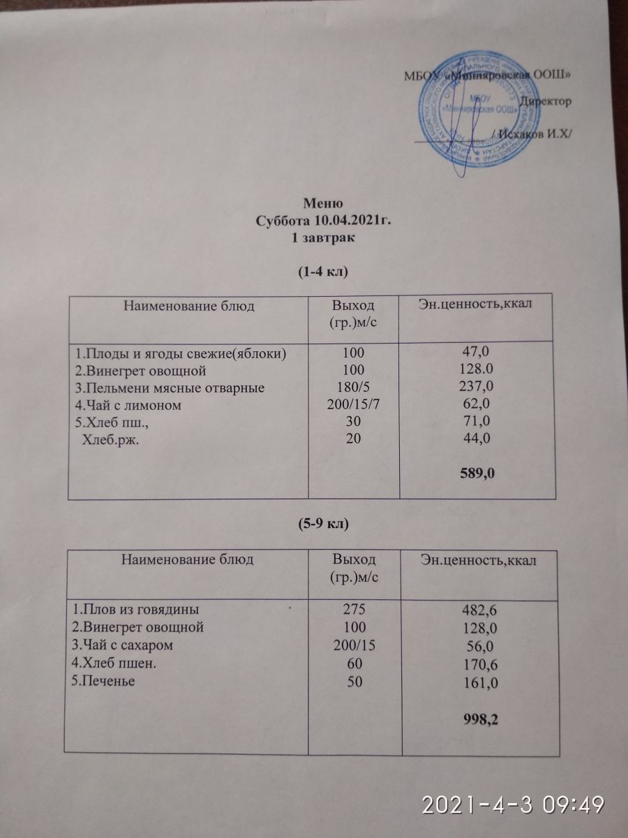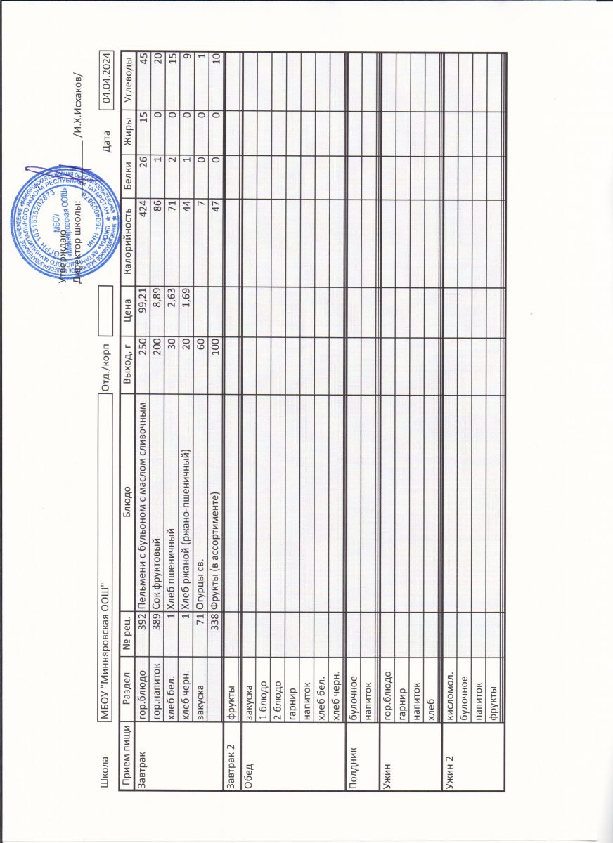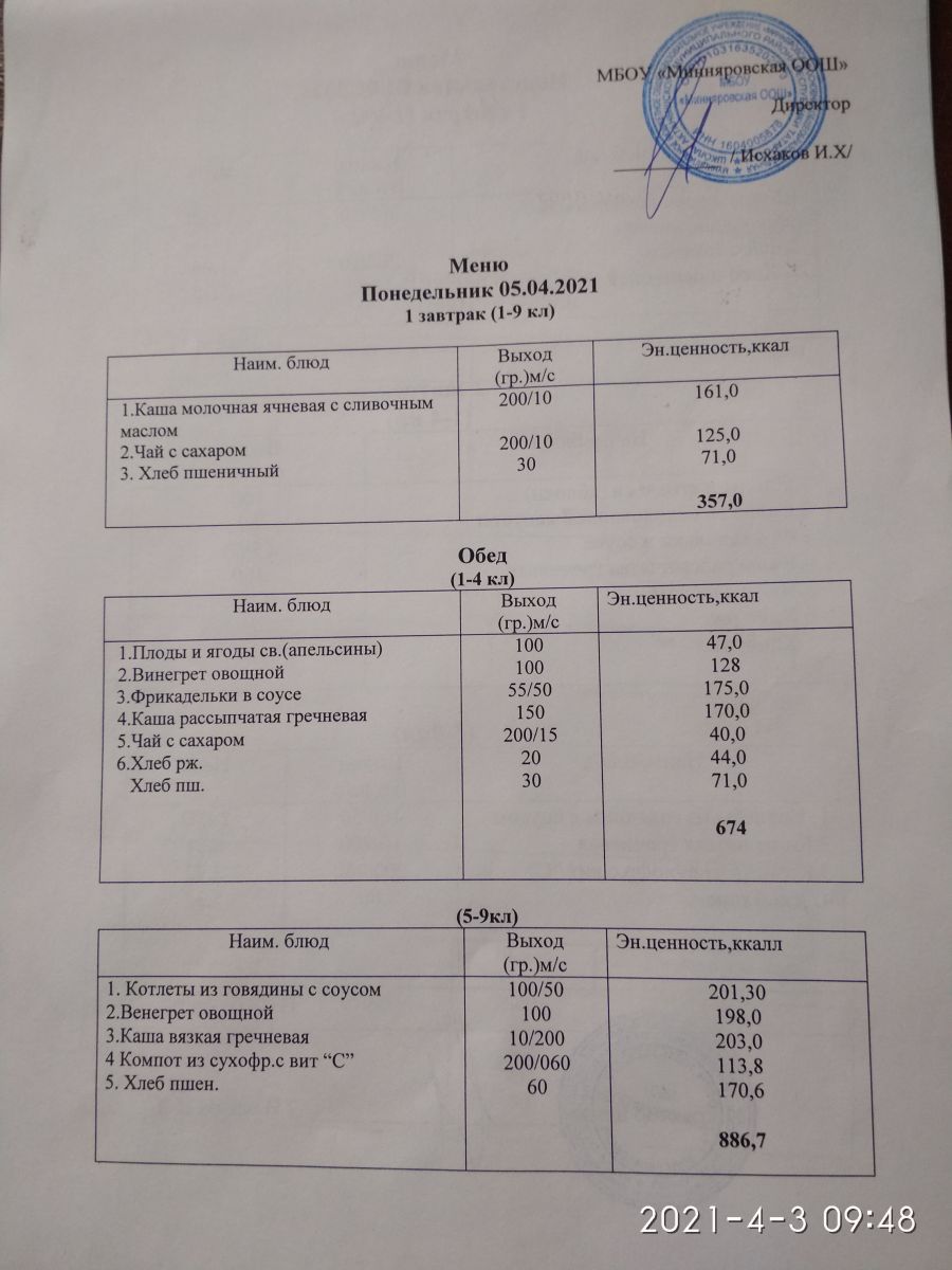 Меню МБОУ "Минняровская ООШ" на 05.04, на 06.04, на 07.04, на 08.04, на 09.04, на 10.04.2021 г.