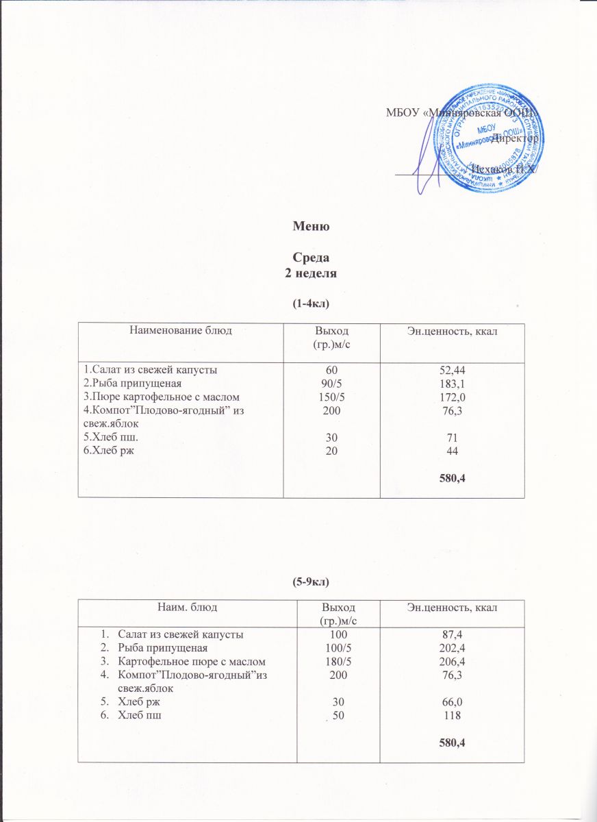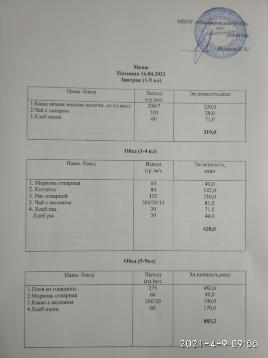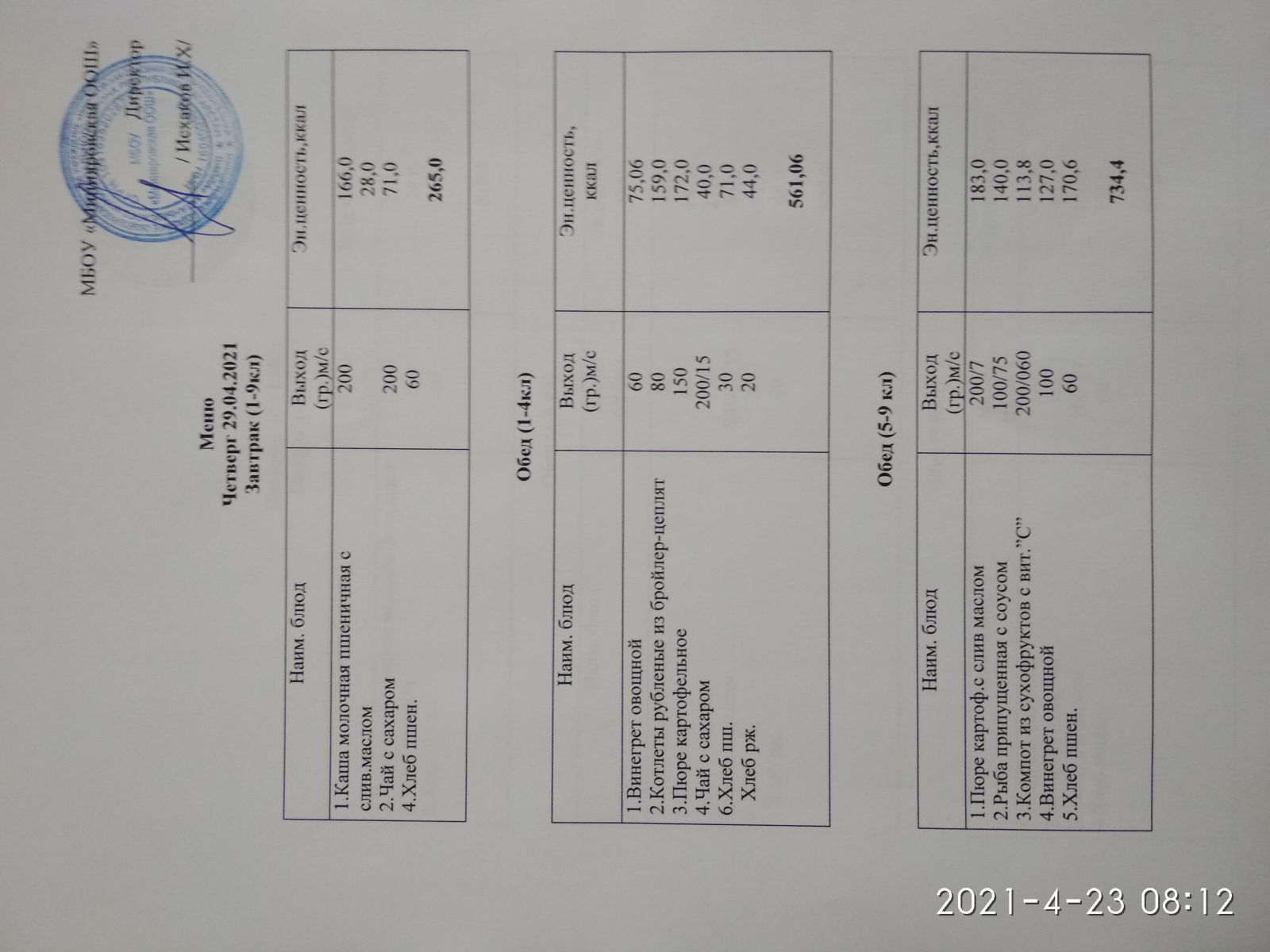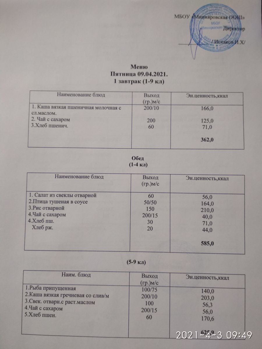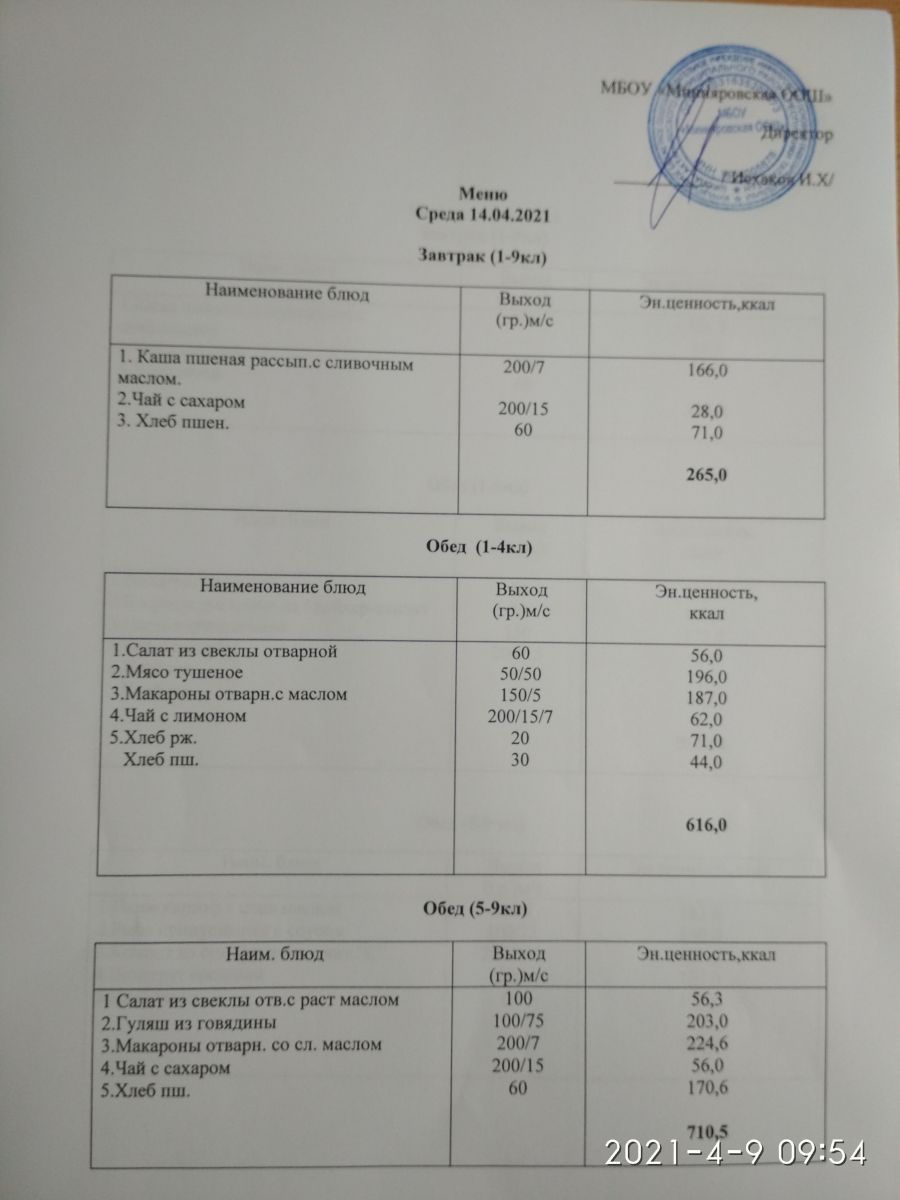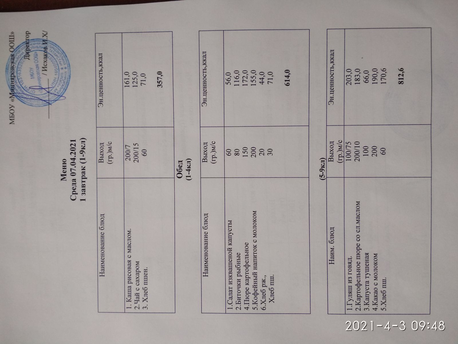 Меню МБОУ "Минняровская ООШ" на 05.04, на 06.04, на 07.04, на 08.04, на 09.04, на 10.04.2021 г.
