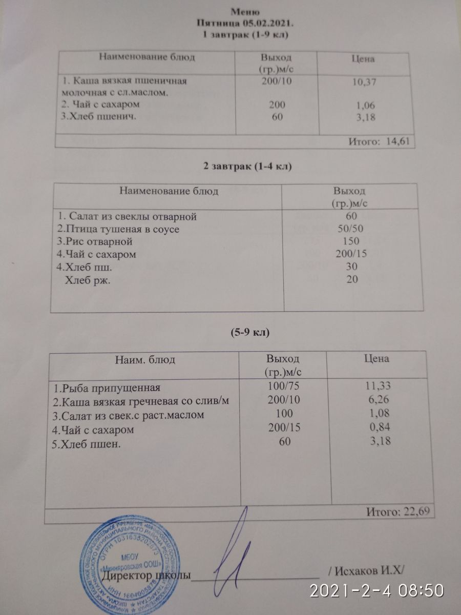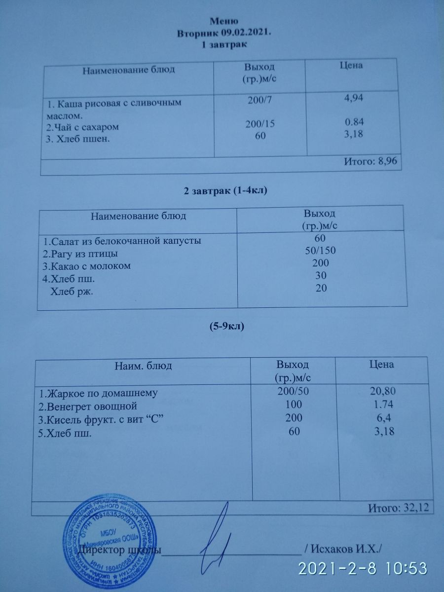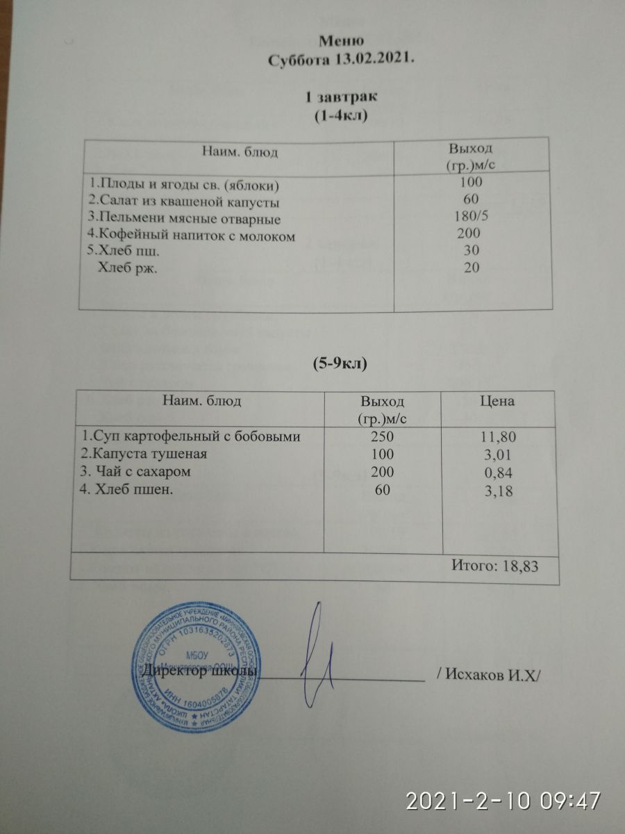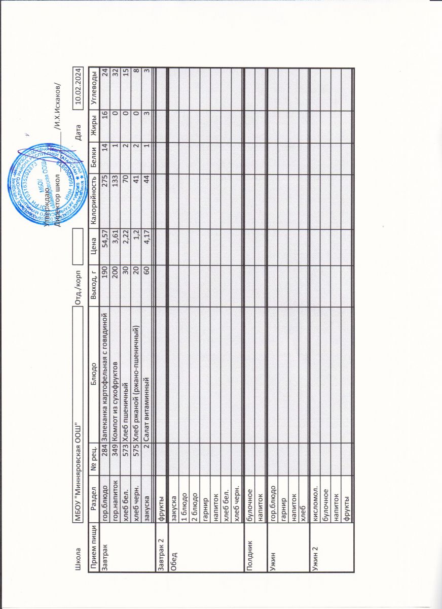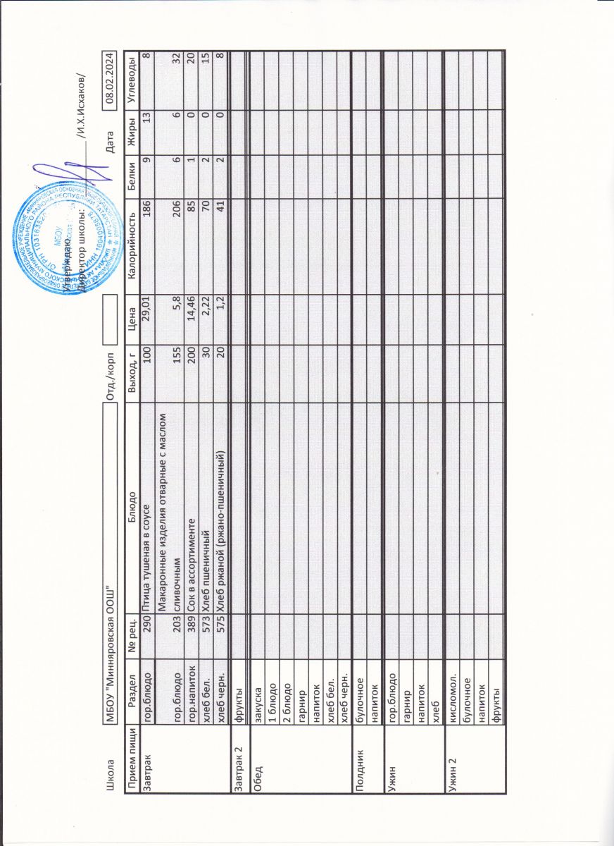 Меню МБОУ "Минняровская ООШ" на 08.02.2021, на 09.02.2021, на 10.02.2021, на 11.02.2021, на 12.02.2021, на 13.02.2021