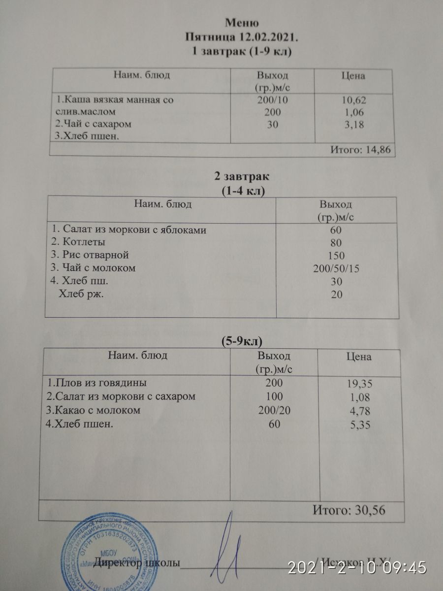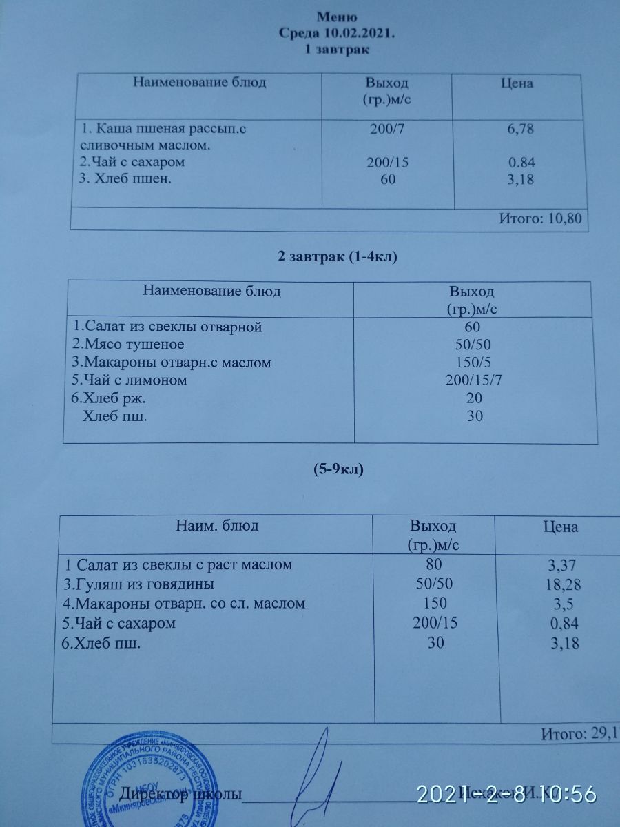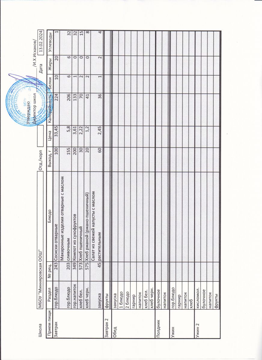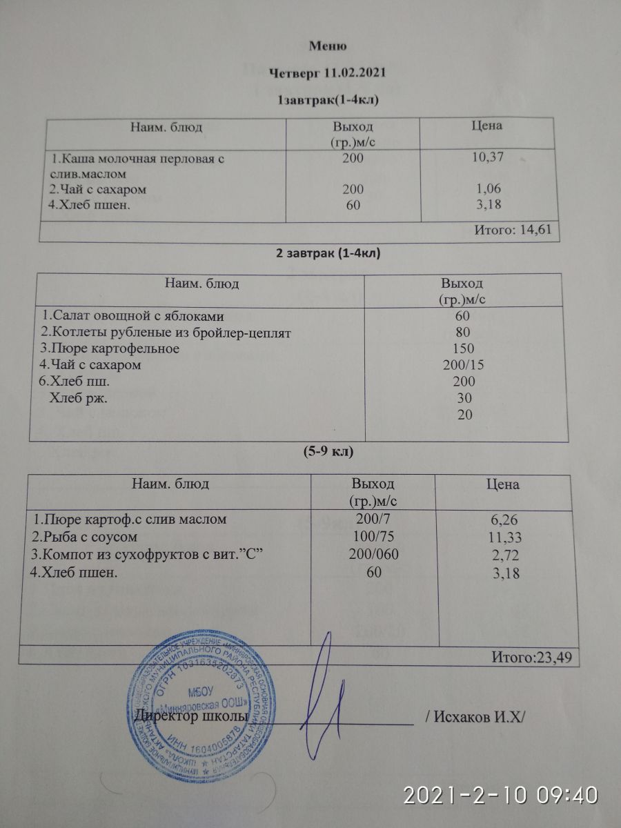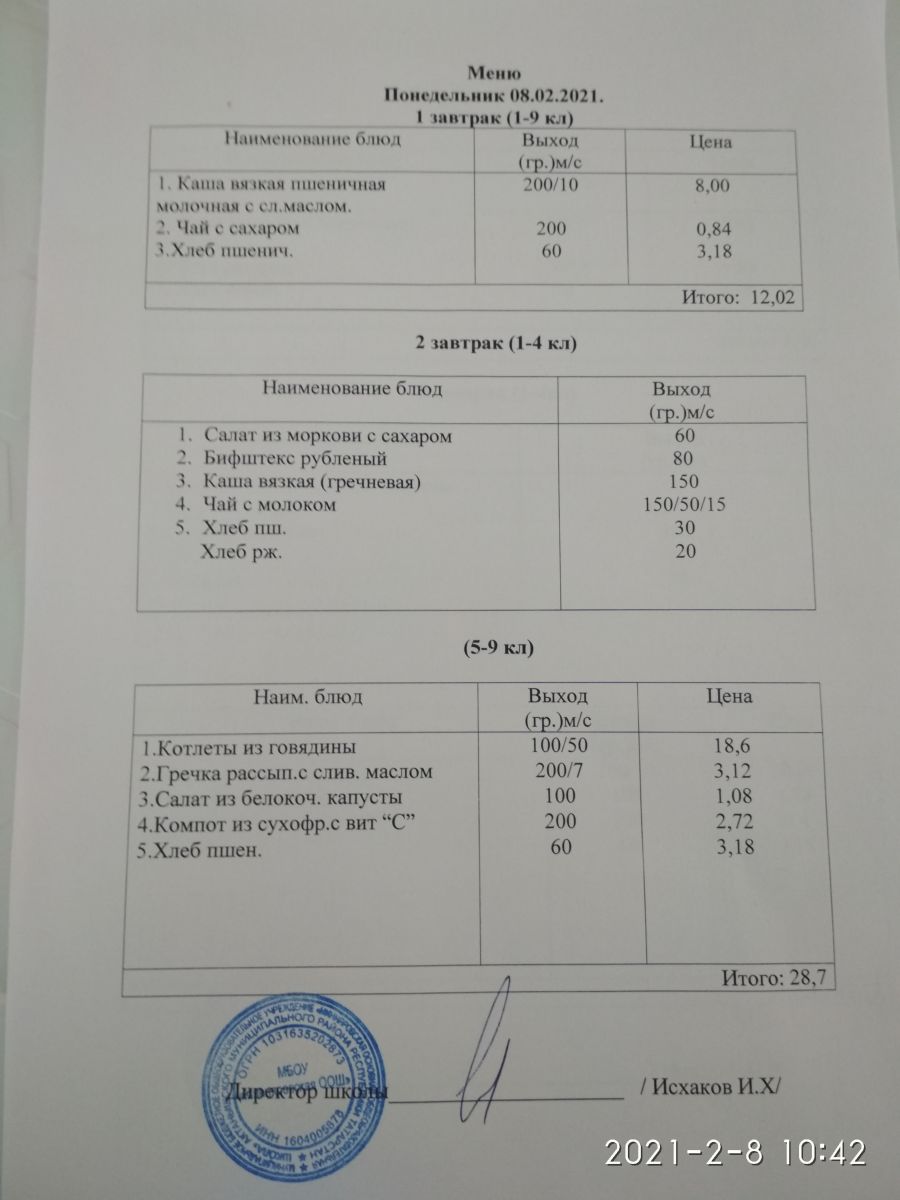 Меню МБОУ "Минняровская ООШ" на 08.02.2021, на 09.02.2021, на 10.02.2021, на 11.02.2021, на 12.02.2021, на 13.02.2021