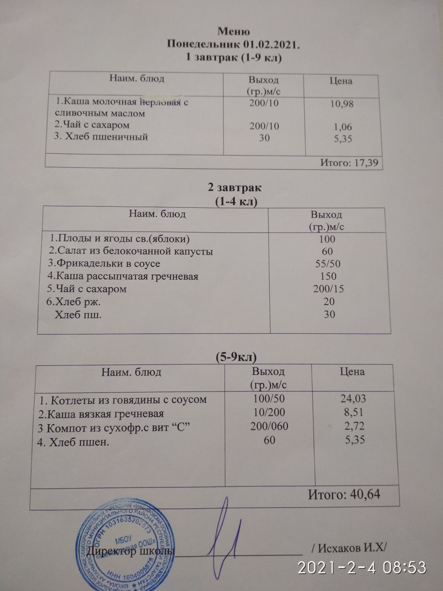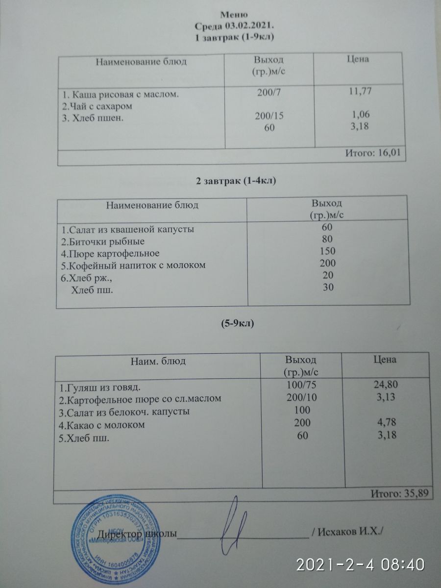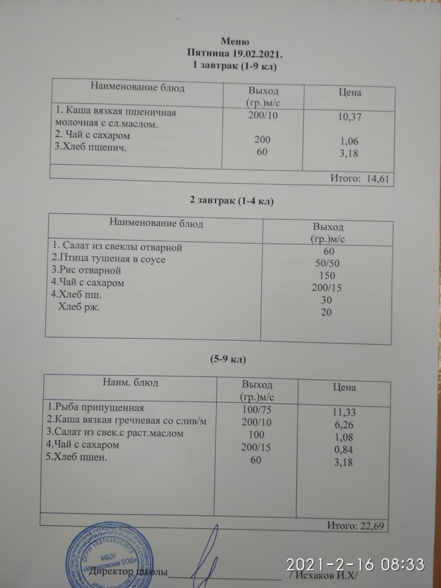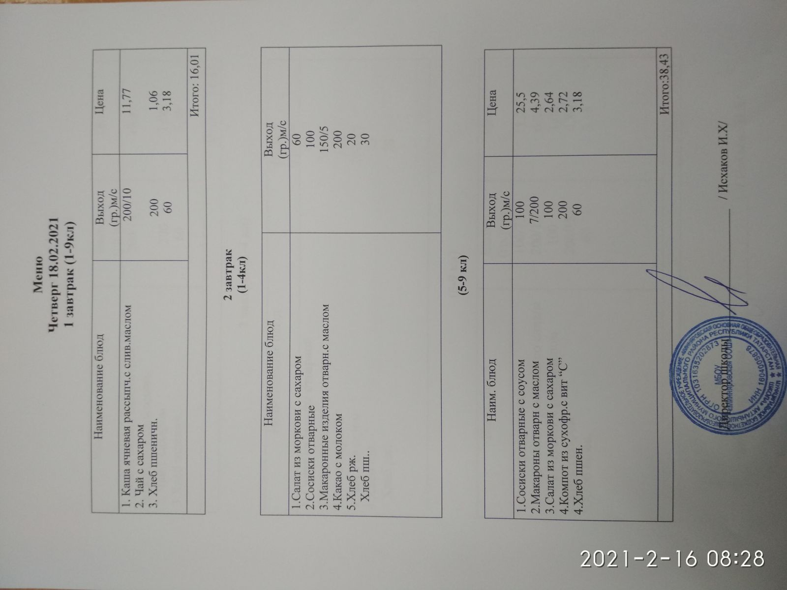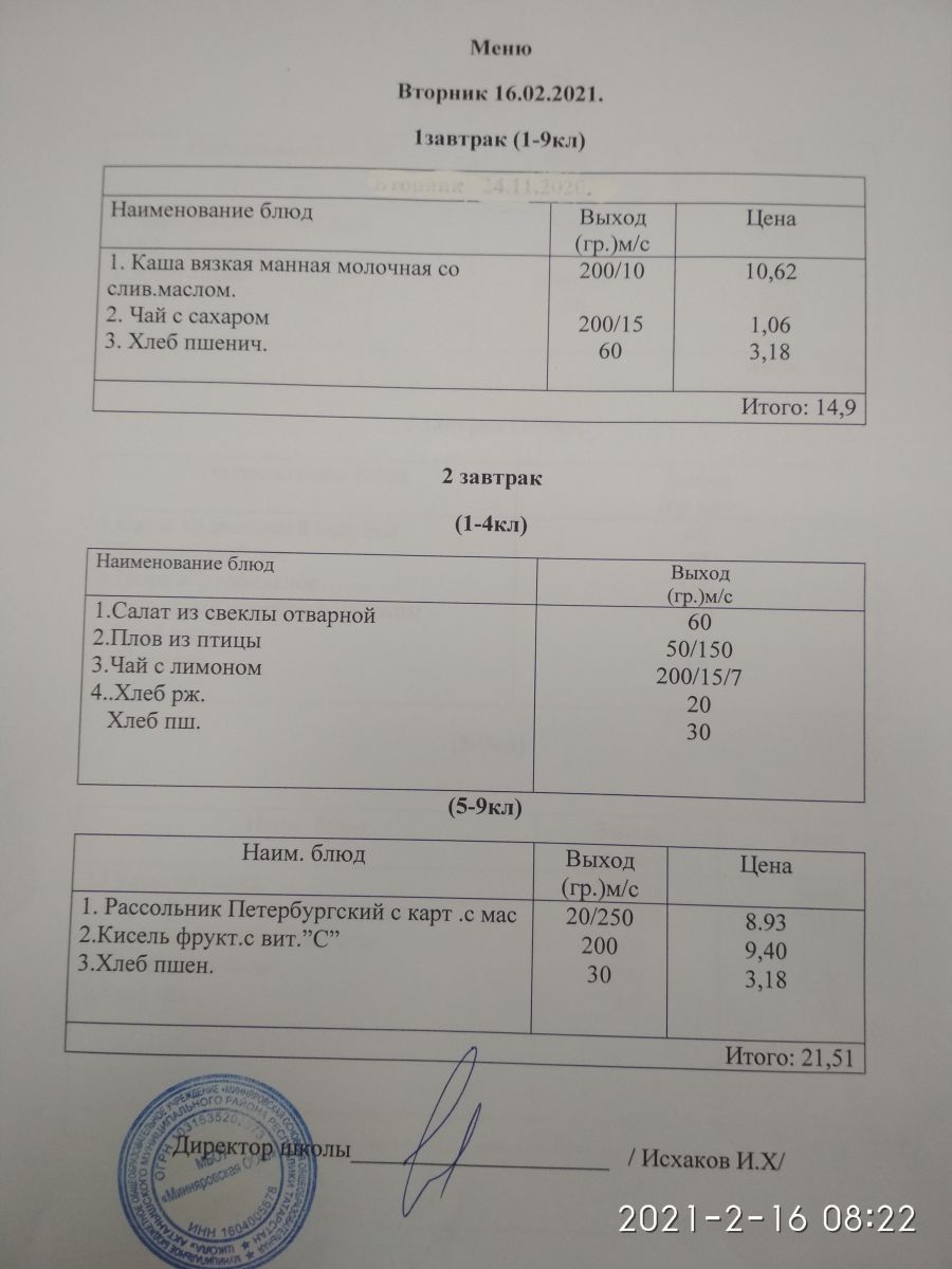 Меню МБОУ "Минняровская ООШ" на 08.02.2021, на 09.02.2021, на 10.02.2021, на 11.02.2021, на 12.02.2021, на 13.02.2021