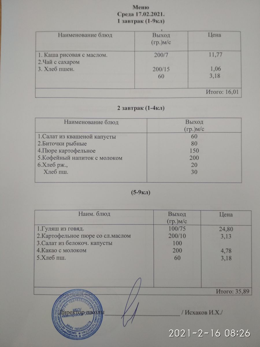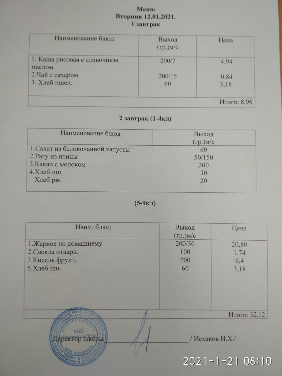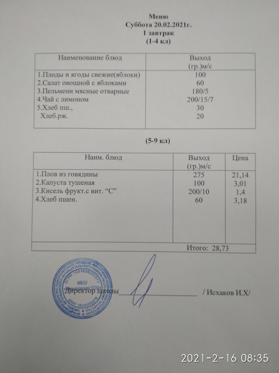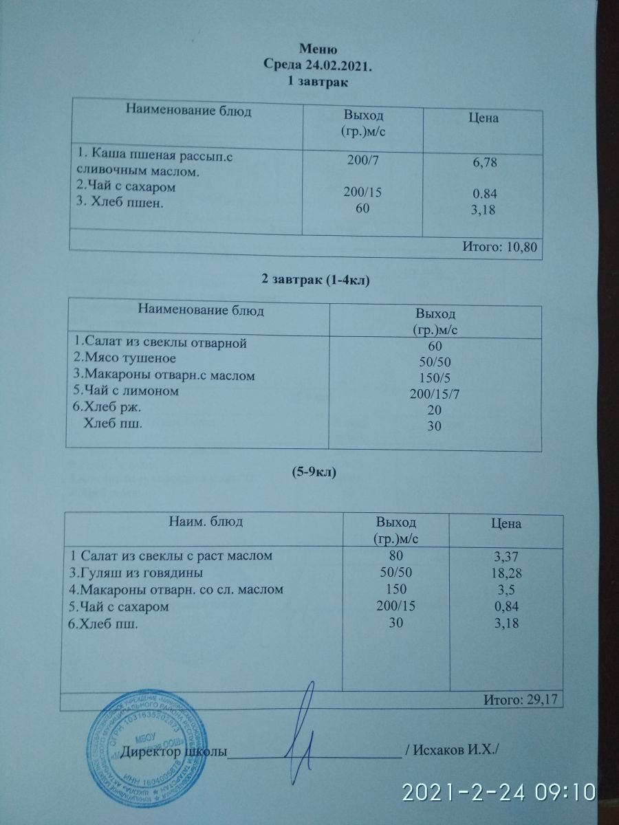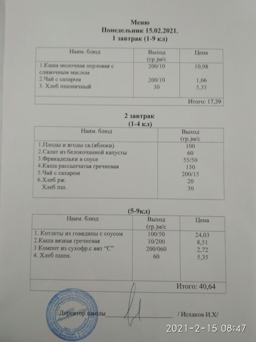 Меню МБОУ "Минняровская ООШ" на 08.02.2021, на 09.02.2021, на 10.02.2021, на 11.02.2021, на 12.02.2021, на 13.02.2021