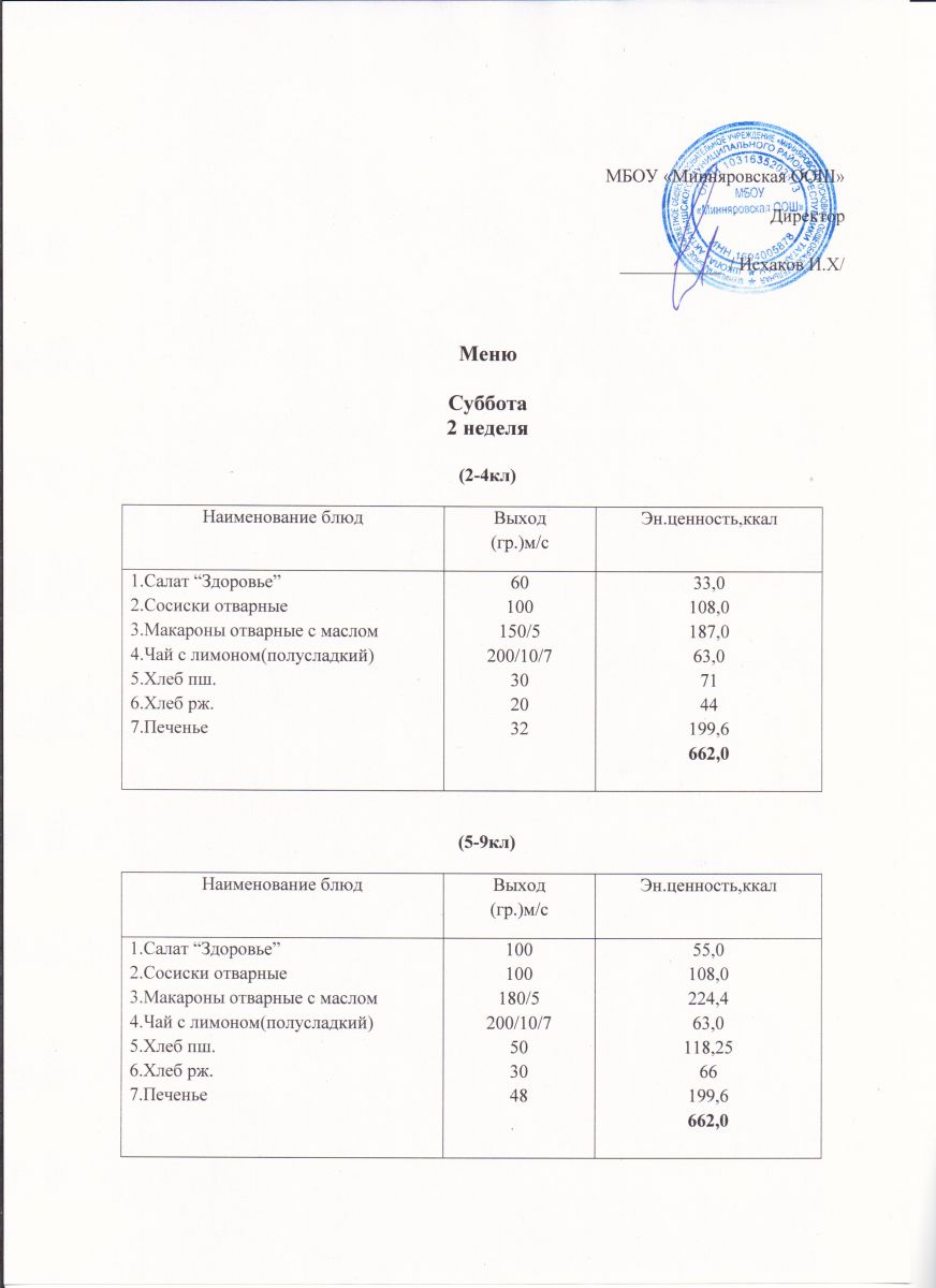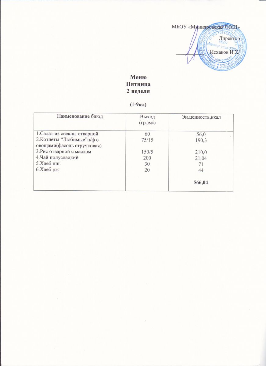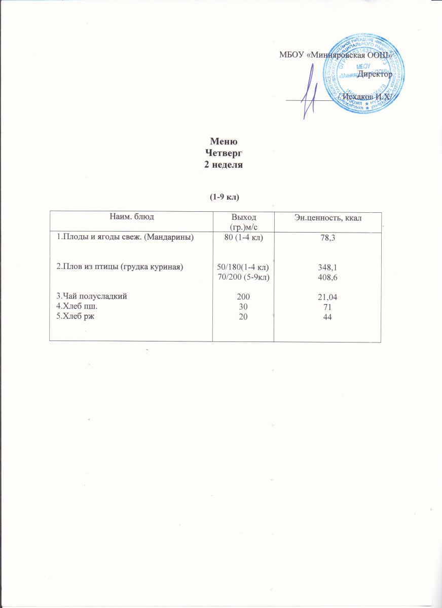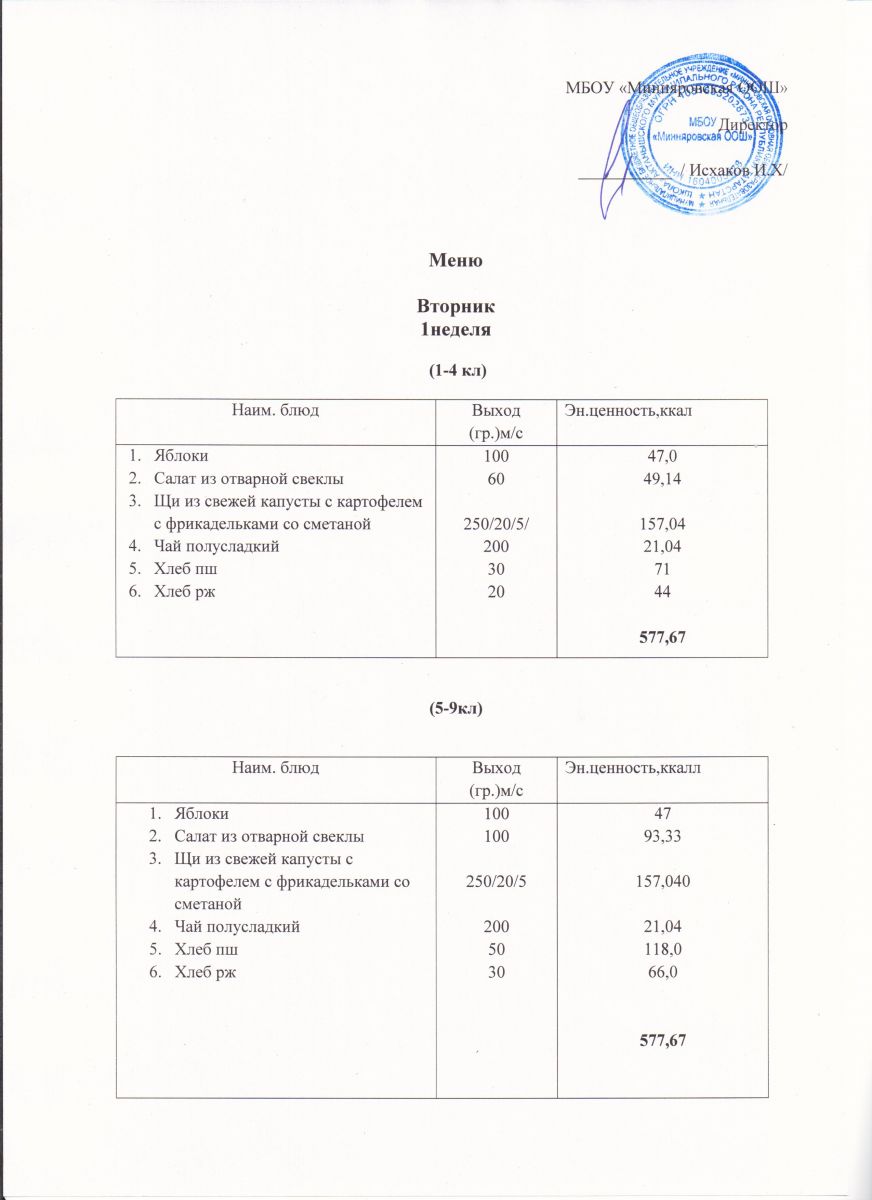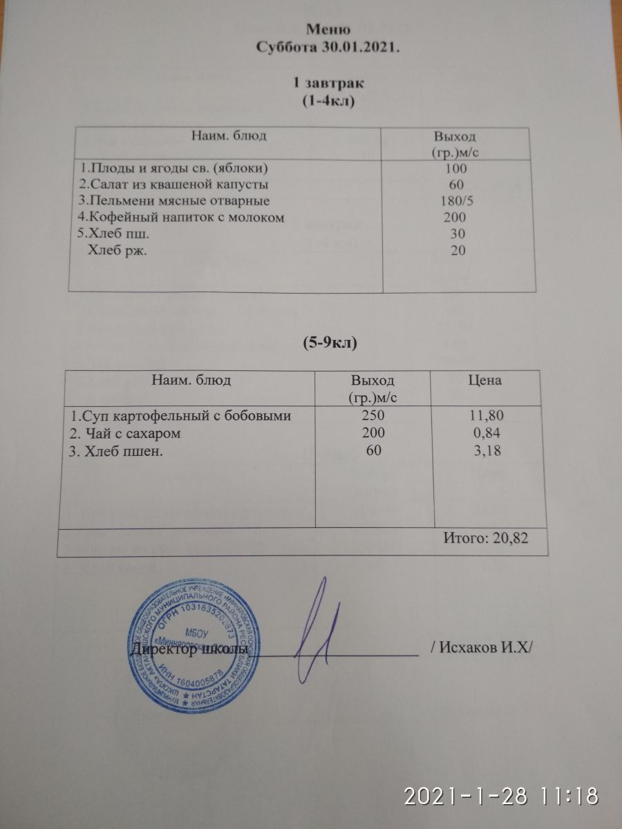Меню МБОУ Минняровская ООШ на 21.11.2020