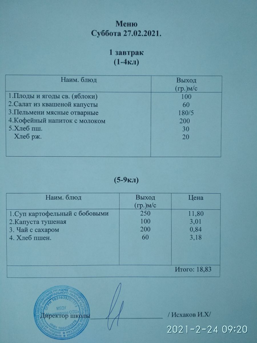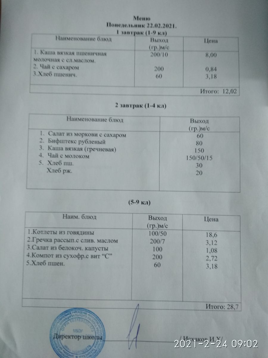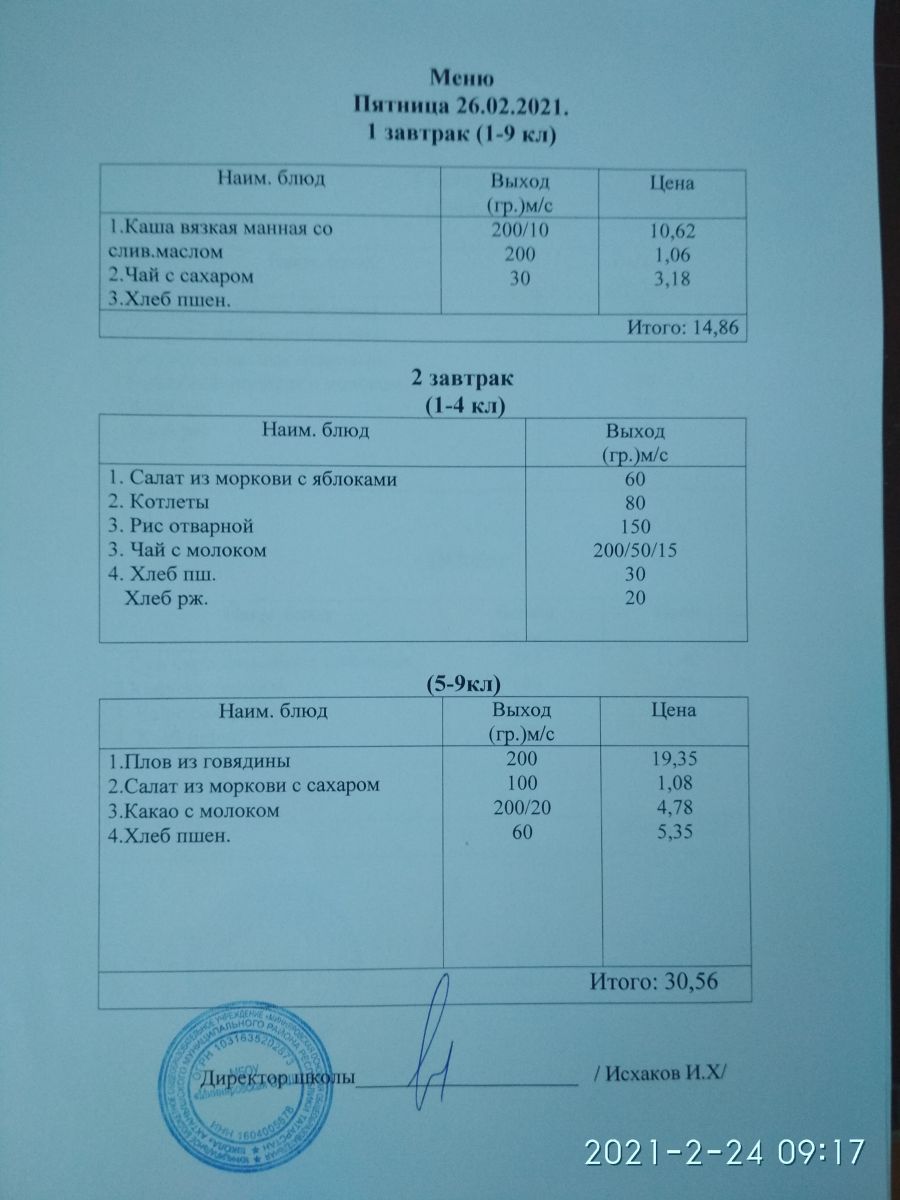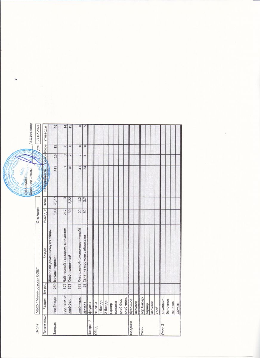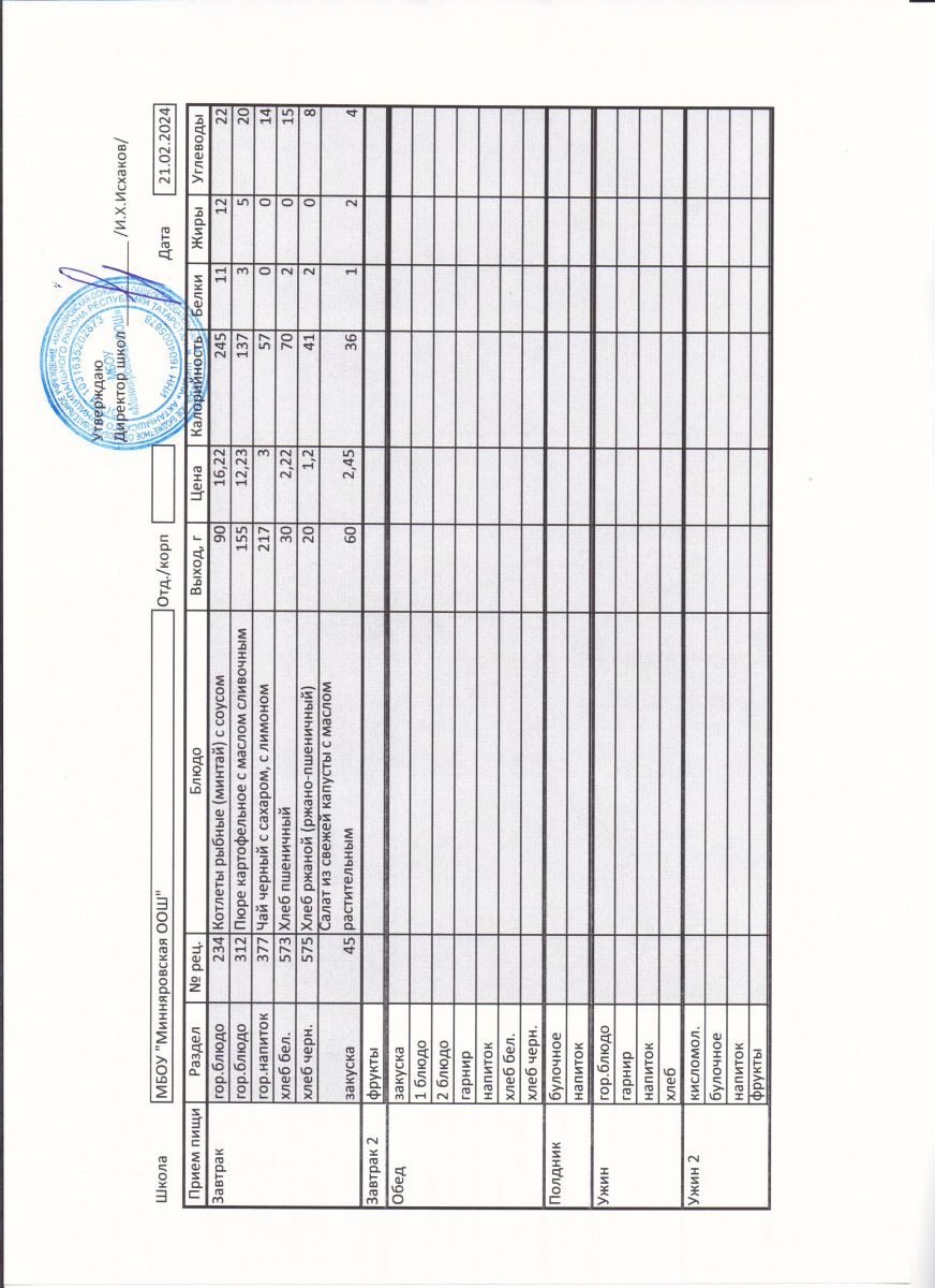 Меню МБОУ "Минняровская ООШ" на 22.02.2021, на 24.02.2021, на 25.02.2021, на 26.02.2021, на 27.02.2021г.