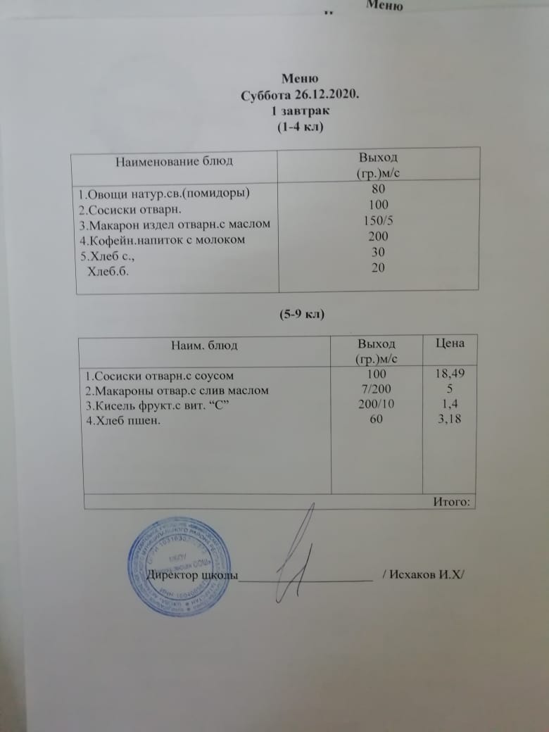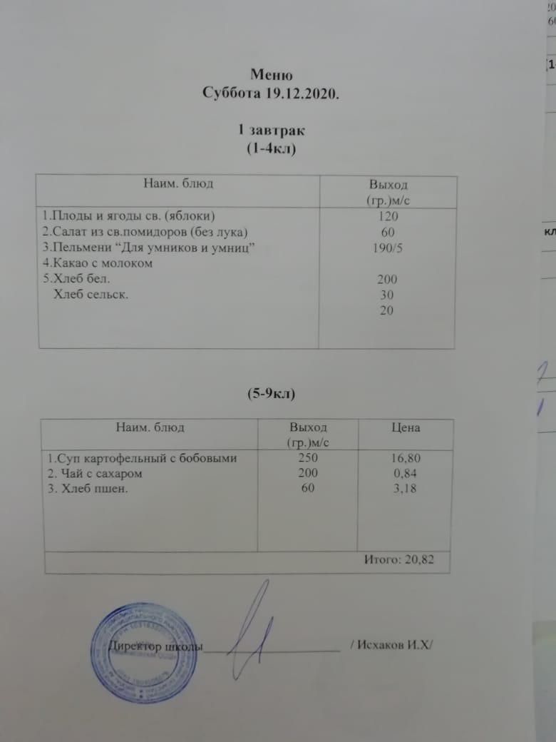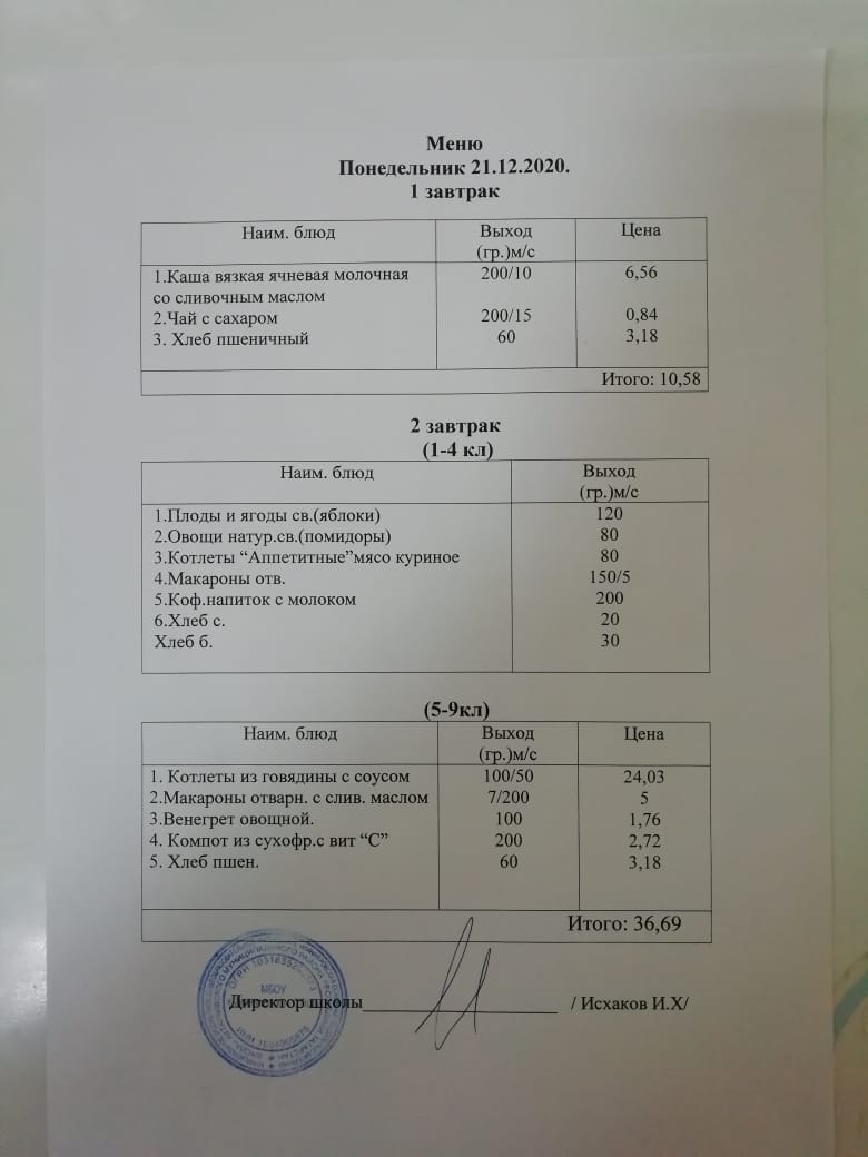 Меню МБОУ "Минняровская ООШ на 21.12.2020,. на 22.12.2020, на 23.12.2020, на 24.12.2020, 25.12.2020, 26.12.2020.