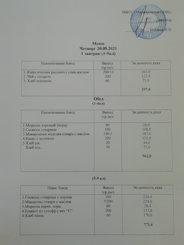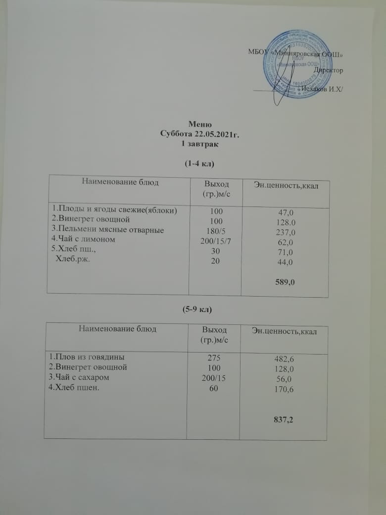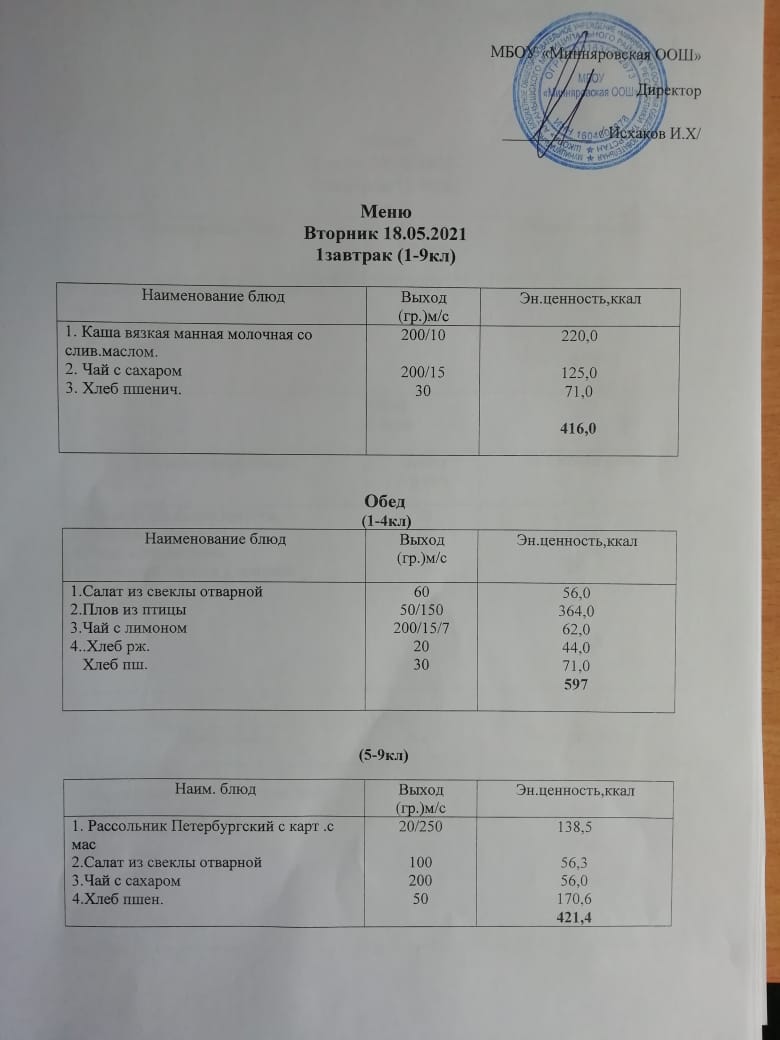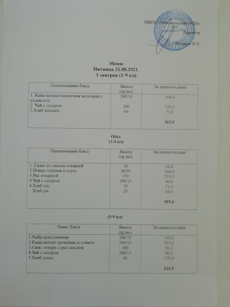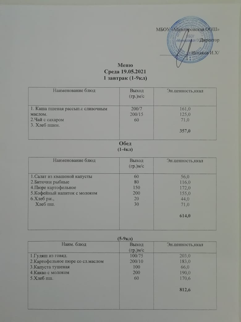 Меню МБОУ "Минняровская ООШ" на 17.05, на 18.05, на 19.05, на 20.05, на 21.05, на 22.05.2021 г.