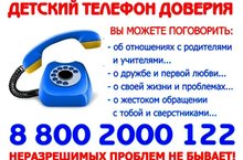 Единый общероссийский телефон доверия для детей, подростков и их родителей 8-800-2000-122.