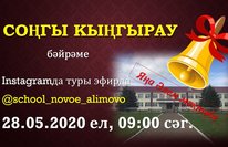 28 мая прозвенел последний звонок для 7 выпускников Новоалимовской школы.3 выпускника: Газизов Данил, Фатхулов Ренат и Шарипов Радмир окончили школу только на хорошие отметки. Учитывая санитарно-эпидемиологическую ситуацию, праздник последнего звонка был проведен в онлайн форме на прямом эфире в социальной сети инстаграм.