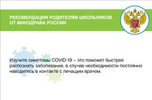 Рекомендации Минздрава России родителям школьников 01.09.2020