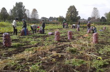 2 сентябрь көнне укытучылары белән берлектә мәктәбебезнең югары сыйныф укучылары мәктәп бакчасында бәрәңге алдылар. Укучылар бик тырышып эшләделәр, бәрәңге уңышы да яхшы гына булды.