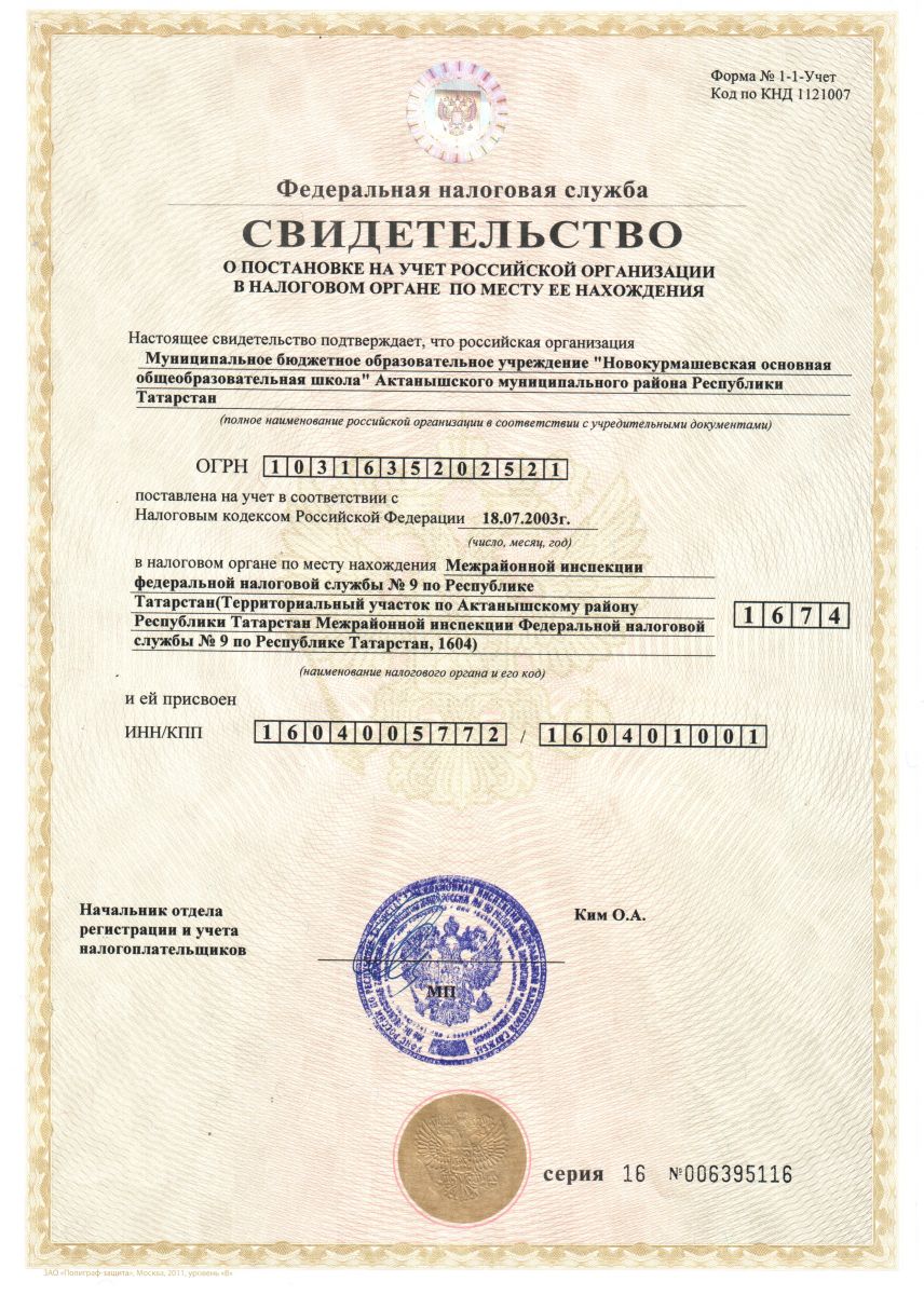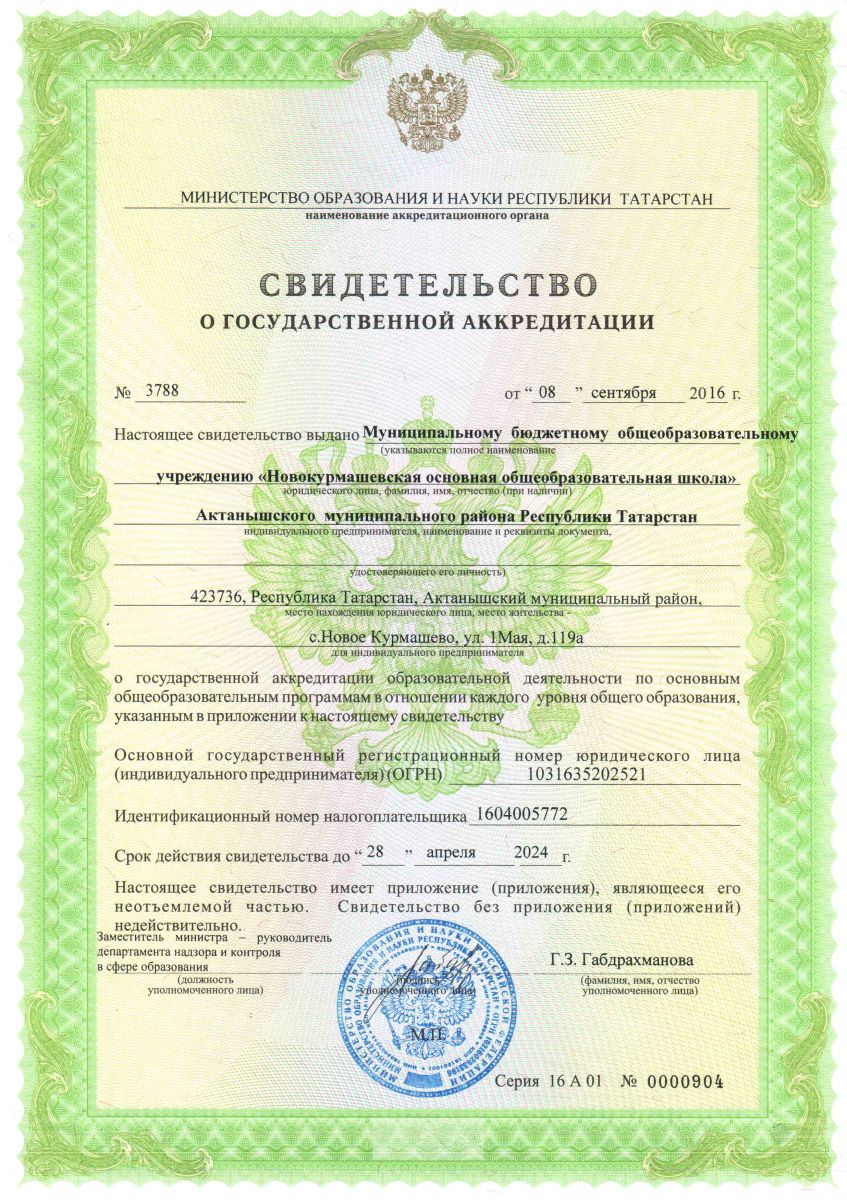 | Адрес: | 423736, с. Новое Курмашево, ул. 1 Мая, д. 119 а |
