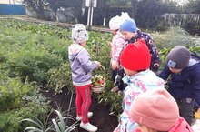 Безнең балалар бакчасы балалары көзнең урып - җыю өчен менә дигән вакыт икәнен яхшы беләләр. Алар бит үзләре. тәрбиячеләр белән бергә җәй буе бакчада яшелчә, җиләк- җимешләр үстерделәр. Балалар бакчасында тәҗрибә мәйданчыгы ул -балаларның үз эшләренең нәтиҗәләрен күрү мөмкинлеге. Бакчада уртак хезмәт- җаваплылыкны тоярга мөмкинлек бирә, хезмәт күнекмәләрен формалаштырырга һәм балалар коллективын берләштерергә ярдәм итә. /Дети нашего детского сада очень. хорошо знают, что осень - прекрасная пора для сбора урожая. Ведь они сами. вместе с воспитателями все лето ухаживали за растениями в огороде . Огород в детском саду- это возможность видеть результаты своей работы. Совместный труд на огороде дает возможность научиться ответственности, способствует формированию трудовых навыков и объединению детского коллектива.