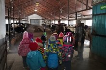 Төрле һөнәр ияләре белән таныштыру максатыннан балалар белән "Исламхузин" гаилә фермасына кунакка бардык..Балалар бозаулар, сыерлар белән таныштылар. Тәрбиячеләр белән бергәләп печәннең саламнан аермасын тикшерделәр. Экскурсия күңелле һәм файдалы узды. Кем белә, бәлки шушы экскурсиядә булганнан соң, балалар киләчәктә авыл хуҗалыгы хезмәтчәннәре сафын тулыландырырлар./С целью ознакомления с различными профессиями мы с детьми посетили семейную ферму "Исламхузин".Дети познакомились с телятами, коровами. Вместе с воспитателями проверили и отличие сена от соломы. Экскурсия прошла весело и с пользой. Кто знает, может быть, после этой экскурсии дети пополнят ряды тружеников сельского хозяйства.