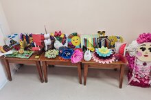 Ата-аналар белән берлектә балалар бакчасында “Серле кәгазь”дип исемләнгән күргәзмә узды. Әлеге күргәзмәгә эшләнмәләр әзерләгәндә балаларның кул, бармак хәрәкәтләре үсә , түземле булырга, балалар тыныч булырга өйрәнәләр. Баланың хыялый күзаллаулары, иҗатлары байый, фикерләү сәләте, эстетик зәвыклары арта./Вместе с родителями в детском саду прошла выставка “Волшебная бумага”. При подготовке изделий к этой выставке у детей развиваются движения рук и пальцев, они учатся быть терпеливыми ,спокойными. У ребенка обогащаются воображение, творчество, развиваются способности к мышлению, эстетический вкус.