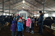 Бүген уртанчылар төркеме балалары тәрбияче Әгъләмова Р.Х., өлкән тәрбияче Хафизова А.М., шәфкать туташы Ильясова Р.Р. җитәкчелегендә авылыбызның шәхси фермер хуҗалыгына экскурсиягә бардылар. Шәхси ферма хуҗалыгы җитәкчесе Рәзиф Рифкать улы Исламхуҗин балаларга үз эше турында бик кызыклы итеп сөйләде. Балалар сыерлар, бозауларны күзәттеләр. / Сегодня дети средней группы под руководством воспитателя Аглямовой Р.Х., старшего воспитателя Хафизовой А.М. и медсестры Ильясовой Р.Р. ходили на экскурсию на личное фермерское хозяйство нашего села. Руководитель личного фермерского хозяйства Исламхузин Р.Р. рассказал детям много интересного о своем деле. Дети также наблюдали за коровами и телятами.