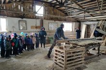 Профориентация буенча экскурсияләрне дәвам итеп, бүген уртанчылар төркеме балалары "Башак" хуҗалыгының такта ярдыру цехына сәяхәт ясадылар. Анда эшләүче Фарил һәм Рамил абыйлары балаларны кызыксындырган сорауларга бик теләп җавап бирделәр. Продложая экскурсии по профориентации, сегодня дети сходили на деревообрабатывающий цех хозяйства "Башак". Работающие там плотники охотно ответили на все вопросы детей.