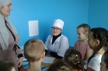 Бүген мәктәпкә әзерлек төркеме балалары шәфкать туташы һөнәре белән таныштылар. Алар башта балалар бакчасының шәфкать туташы бүлмәсенә, аннары авыл фельдер-акушерлык пунктына экскурсиягә керделәр. / Сегодня дети подготовительной группы познакомились с профессией медсестры. Они сначала побывали в кабинете медсестры детского сада, потом ходили на экскурсию в сельский ФАП.