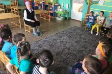 Лаеклы ялдагы укытучы, бүгенге көндә авылда ветераннар советы рәисе булып эшләүче Тәхия апа Усманова балалар бакчасында балаларга әхлак дәресләре үткәрә. / Учительница в заслуженом отдыхе, председатель совета ветеранов Т.А. Усманова проводит в детском саду уроки нравственности.
