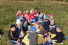 Көннәр матур торганда тәрбиячелэр Максутова Л.Р. белән Хафизова А. балаларны көзге табигать кочагына экскурсиягә алып бардылар. / Вспитатели Максутова Л.Р. и Хафизова А. с детьми ходили на экскурсию.