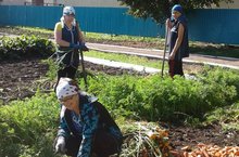 Яңгырлы көннәр башланганчы кызларыбыз бакчадагы уңышны җыеп алдылар. / Собрали урожай с участка детского сада.