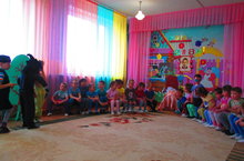 Бүген балалар бакчасына Уфа шәһәреннән планетарий килде./ Сегодня в детский сад из города Уфы приехал планетарий.