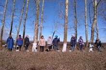Бүген юл буендагы полоса агачларын агарту өмәсе булды./ Сегодня был субботник по побелке деревьев на полосе около трассы.