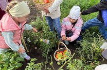 Балаларга иң гади хезмәт алымнарына өйрәтү, белгәннәрне ныгыту, хезмәткә уңай караш тәрбияләү максатыннан , тәҗрибә бакчасына үзебез утырткан, җәй буе су сибеп тәрбияләп үстергән яшелчәләрне җыеп алдык
