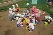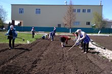 Бүген күмәк көч белән бакчада яшелчәләр утырттык.