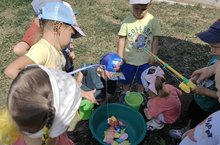 Җәй - балаларга бик күп яңа һәм кызыклы тәҗрибәләр алу, ел дәвамында сәламәтлекне ныгыту өчен иң кулай вакыт. Бүген бакчабызда җәйге су бәйрәме “Нептун көне” узды. Диңгез патшасы Нептун балаларны кунакка килеп, балаларга җәйнең эссе көнендә искиткеч бәйрәм бүләк итте . Балалар диңгезләр һәм океаннар патшасы Нептун белән бергә җырладылар, биеделәр. Бәйрәм барышында төрле уенныр уйнадылар.Тамаша балаларга бик ошады. /Лето - это прекрасная пора для детей. Именно летом у детей есть уникальная возможность получить массу новых и интересных впечатлений, заряд здоровья на весь год. И в самый разгар лета, в Новоалимовском детском саду прошло любимое всеми детьми музыкально-спортивное развлечение «День Нептуна». Самым ярким моментом праздника было появление главного героя Нептуна. Сказочный герой сразу привлёк внимание детей своим спортивным задором, дети с радостью принимали участие в разнообразных играх и эстафетах, читали стихи, отгадывали загадки. Самым радостным моментом праздника стали игры с водой, которые внесли в развлечение ещё больше веселья, задора и смеха. Завершением стал салют из мыльных пузырей, который вызвал бурю положительных эмоций у детей