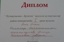 "Ак калфак" хатын-кызлар республика иҗтимагый оешмасының Актаныш муниципаль районы бүлекчәсе оештырган "Кулъяулыгым - бүләгем" чигелгән кулъяулыклар район конкурсында безнең балалар Мөхәмәдиев Әмир белән Хаҗиева Алия 1 урын алып кайттылар. Балаларны тәрбиячеләр Солтанова Лилия белән Әгъләмова Розалия әзерләде. Афәрин!!!