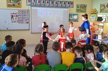 Сәхнә.. Зурлар өчен генә түгел, балалар өчен дә серле бер дөнья. Бакчабыз тәрбиячеләре балаларны сәхнә сәнгатенә тарту, аларның артистлык сәләтләрен үстерү өчен шартлар тудырып кына калмыйлар, ә аларны чын артистлар кебек , сәхнәләрдә чыгыш ясау мөмкинлеге дә булдыралар. Шул уңайдан нәниләр 23 февраль һәм 8 март бәйрәмнәрен берләштереп авыл халкын мәдәният йортында үзләренең күп санлы чыгышлары белән сөендерделәр./Сцена.. Загадочный мир не только для взрослых, но и для детей. Воспитатели Новоалимовского детского сада не только создают условия для приобщения детей к сценическому искусству, развития их артистических способностей, но и дают им возможность выступать на сцене , как настоящие артисты. В связи с этим малыши объединили праздники 23 февраля и 8 Марта и порадовали сельчан своими многочисленными выступлениями в Доме культуры.
