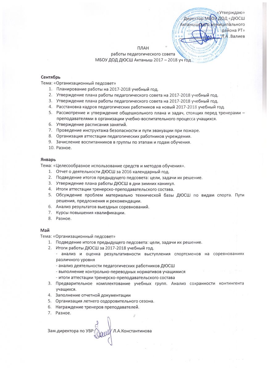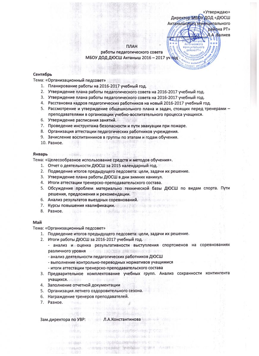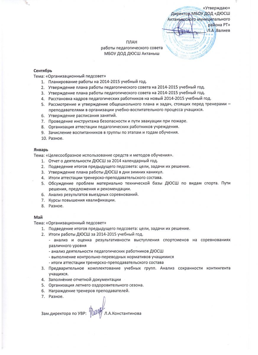 План работы педагогического совета МБОУ ДОД ДЮСШ Актаныш