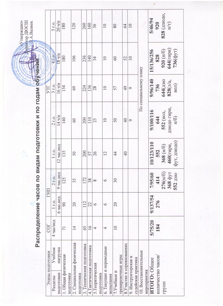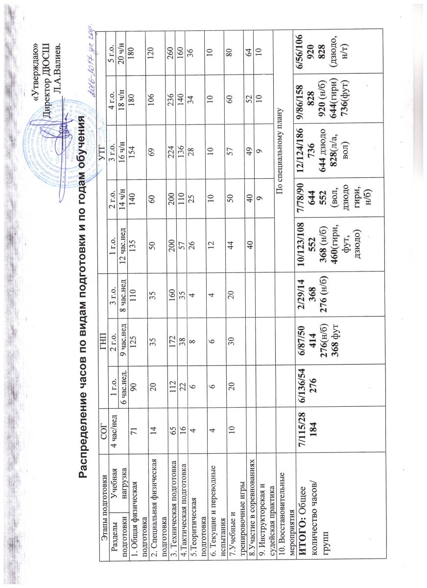 Распределение часов по видам подготовки и по годам обучения 2016-2017 уч год