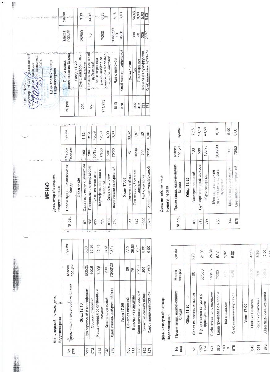 меню ежедневного горячего питания 1 неделя