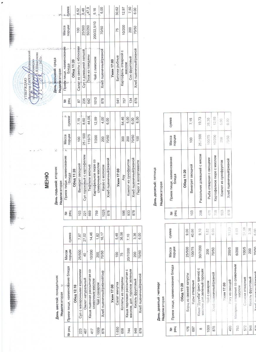 меню ежедневного горячего питания 2 неделя