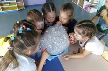 Балалар төрле тәҗрибәләр үткәрергә бик яраталар. Бу юлы без суның кайбер үзлекләре белән таныштык. Балалар белән бергә суның кайларда булуын искә төшердек. Суны сөт белән чагыштырып, төрле төстәге буяулар салып карадык... Әлеге тәҗрибәдән балалар шуны аңладылар: су сыек,иссез, төссез. Су губкага, җиргә бик яхшы сеңә, кайнар һәм салкын була ала. Балалар бик канәгать калдылар!