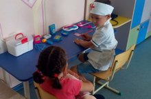 В детском саду дети каждый день играют в сюжетно-ролевые игры. Для этого в нашем детском саду есть множество уголков: "Магазин", "Больница", "Парикмахерская", "Гараж" и другие. Дети с удвольствием играют, общаются друг с другом. У них развивается диалоговая речь и воспитывается трудолюбие и уважение к труду взрослых.