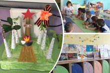 Бөек Җиңүнең 73 еллыгы килеп җитте. 4 ел буена барган сугышта җиңеп кайткан, илебез тынычлыгы өчен үлеп калган бабайлар, әтиләр, абыйлар батырлыгын балаларга күңеленә сеңдереп калу максатыннан, зурлар "Б" төркемендә батырлык дәресләре үткәрелде. Эш төрләре күптөрле иде. "Бөек Ватан сугышы турында - балаларга!" исемле слайдлар караганнан соң, балалар белән әңгәмәләр оештырдык, шигырләр укыдык, җырлар тыңладык. Батырларның исемнәрен мәңгеләштереп, балалар үз куллары белән мәңгелек ут ясадылар. -