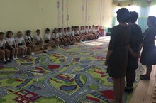 17 апрель көнне бакчабызда Яр Чаллы территориаль идарәсенең Актаныш районындагы “Юл хәрәкәте иминлеге” дәүләт бюджет учреждениесе җитәкчесе Саетова Рәсимә Заһит кызы кунак булды. Ул башта зурлар В төркеме балалары белән уен-ярышта катнашты, аннары мәктәпкә әзерлек төркеме балалары белән “Юл йөрү кагыйдәләрен белик” исеме астында ачык эшчәнлек (тәрбияче Марданова А.Д.) карап узды. Әлеге чаралар игътибарлы булу, юл йөрү кагыйдәләренә буйсынырга өйрәтү, дуслык-бердәмлек хисләре тәрбияләү максатыннан үткәрелде. Эшчәнлегебез балалар башкаруында “Без – яшәр өчен туганбыз!” социаль флешмобы белән төгәлләнде. Ахырдан кунагыбыз балаларның юл йөрү кагыйдәләре буенча белемнәреннән кәнагәть булуын искәртте һәм истәлекле бүләкләрен тапшырды.