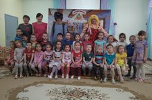 Бакчабызга Пенза өлкәсеннән театр артистлары килеп, “Сказочная история” дип исемләнгән спектакль белән атналыгыбызны тагын да баеттылар. Балалар әкият геройлары биргән сорауларга шулкадәр кызыксынып, сөенеп, рус телендә җавап биреп, аралашып утырдылар. Әлеге очрашу истәлеккә фотога төшү белән тәмамланды.