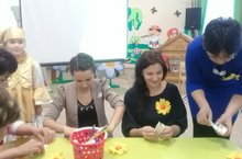 Бүген, зурлар "В" төркемендә әти-әниләр өчен "Ачык ишекләр көне" үтте. Тәрбиячеләр Мазнавиева Миләүшә Роберт кызы интегральләшкән шогыль (сөйләм үстерү һәм ФЭМП), Газизова Эльвира Дилшат кызы ябыштыру эшчәнлеген ата-аналарга күрсәттеләр